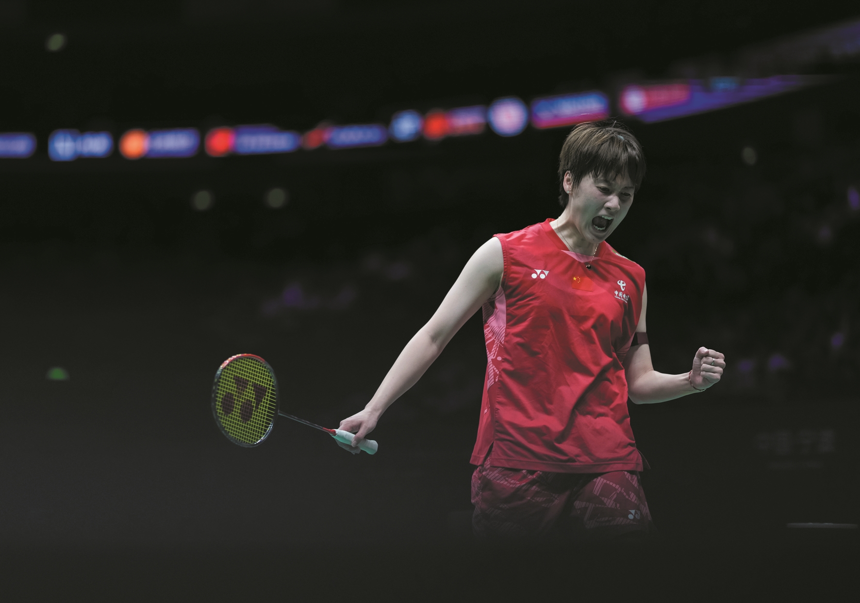 这是陈雨菲在比赛中庆祝得分。 (新华社发)