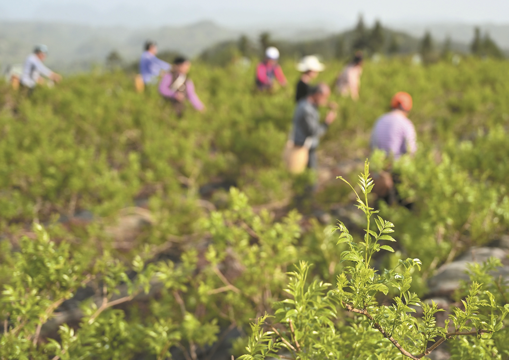 眼下,湖北省恩施州来凤县近10万亩藤茶进入春季采摘季,当地茶农忙着采摘加工,供应市场。