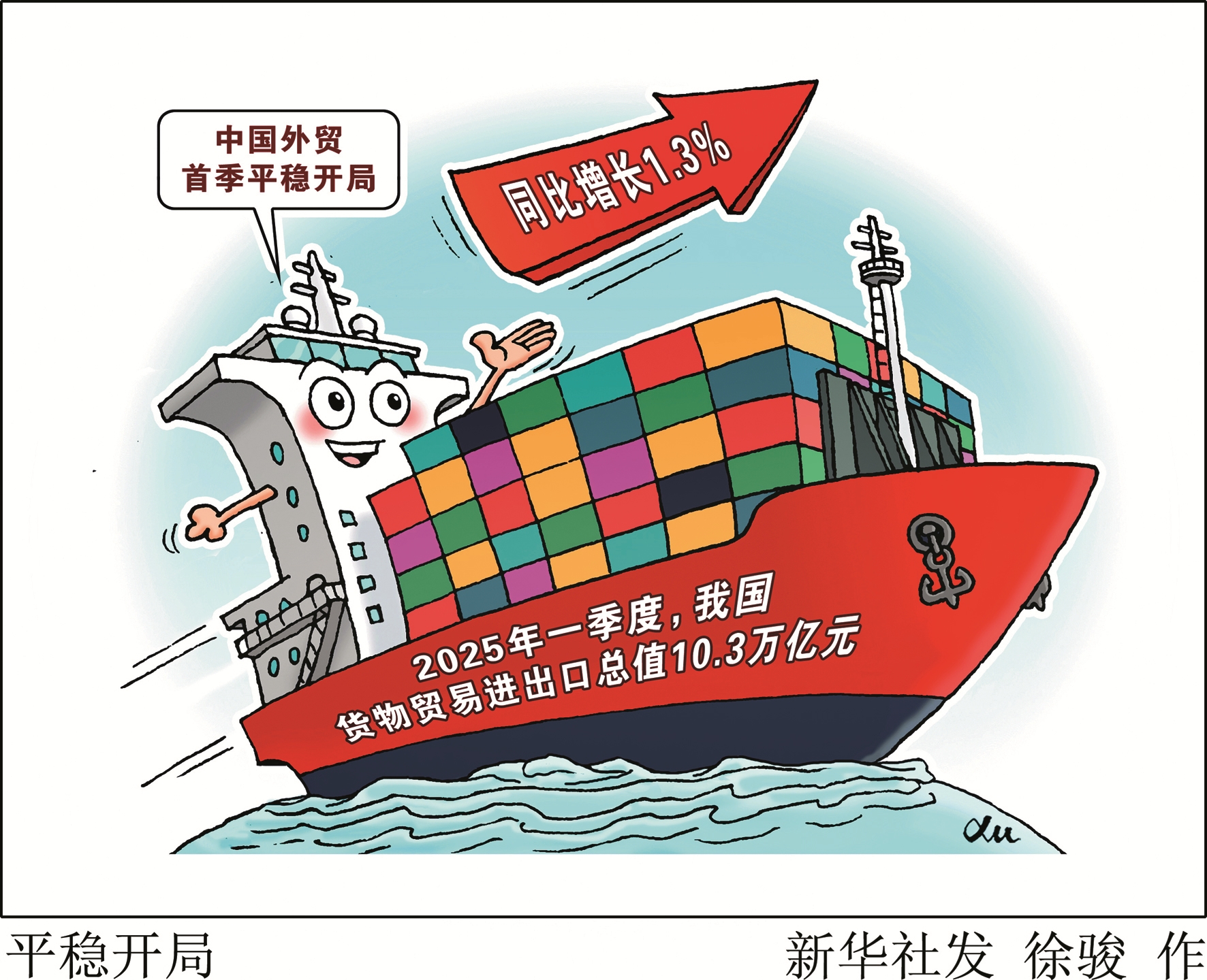 国务院新闻办4月14日举行新闻发布会,介绍2025年一季度进出口情况。今年一季度,我国货物贸易进出口10.3万亿元,同比增长1.3%。在外部困难挑战增多的情况下,各地各部门和广大外贸经营主体积极应对,推动一季度我国外贸进出口实现平稳开局。(新华社发)