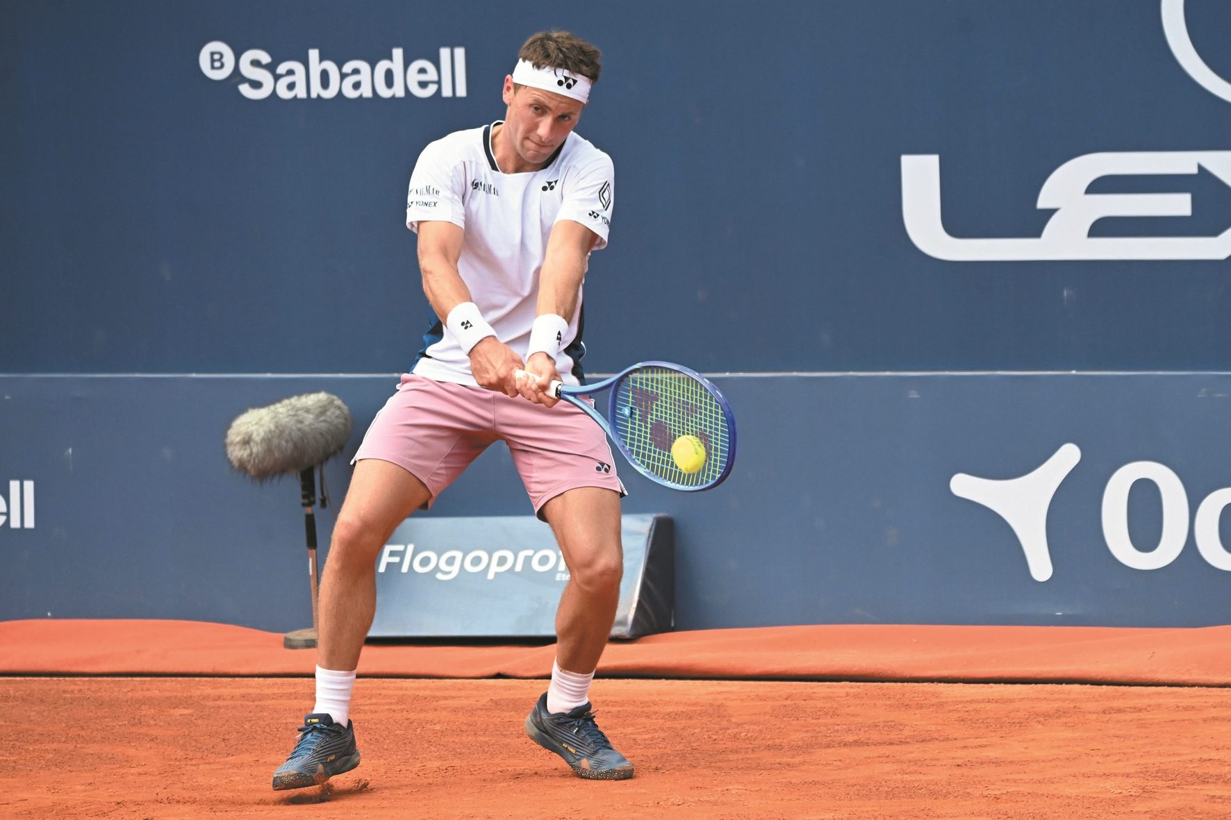 巴塞罗那公开赛: 鲁德晋级十六强 4月15日,在西班牙巴塞罗那进行的2025巴塞罗那网球公开赛男子单打首轮比赛中,挪威选手鲁德2比0战胜哥伦比亚选手加兰,晋级十六强。 这是鲁德在比赛中回球。 (新华社发)