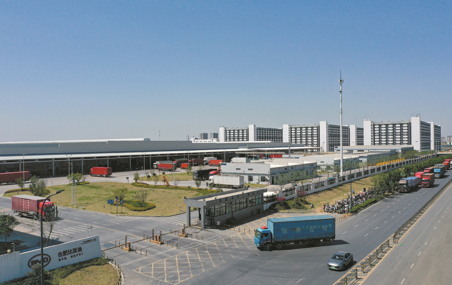 春风和煦,杨柳轻舞,从合肥市区驱车向北约35公里,行至长丰县中南部的下塘镇,以比亚迪命名的主干道上,运送汽车零部件的货车排成长长一列,鱼贯而入比亚迪合肥基地园区。