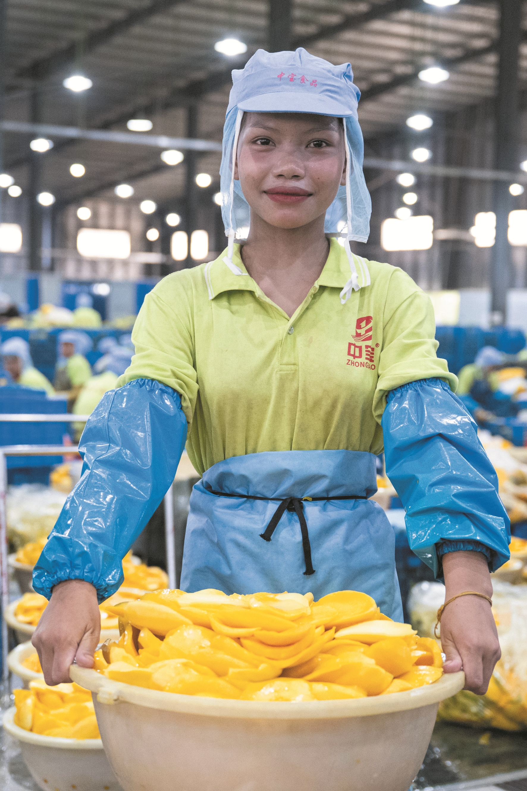 在柬埔寨磅士卑省中宝食品科技有限公司投资建设的芒果干加工厂,工人们通过一道道细致的工序,将新采摘的鲜芒果加工成香甜柔韧的芒果干。柬埔寨芒果干经由海运,运抵位于中国福建省漳州市平和县的中宝(福建)食品科技有限公司,再经过分拣、包装、装箱,几天之内便可到达中国市场各销售终端。