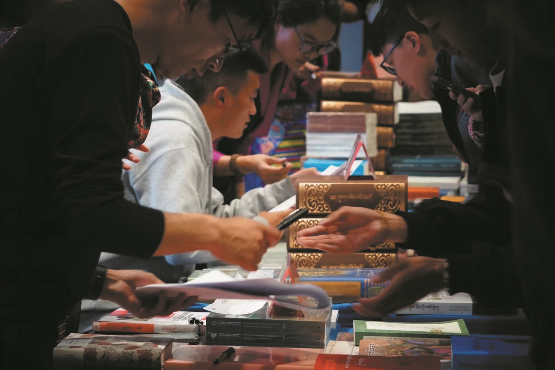 在书籍赠送环节中,大家按照自己登记的序号、书名在领书区域有序排队,等待领取自己那一本心仪已久的书。