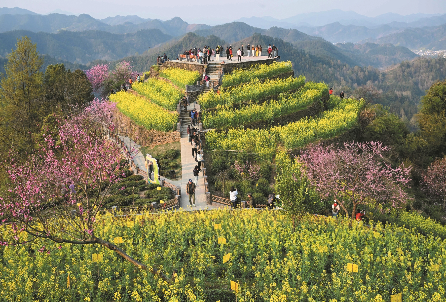 图①为3月26日,游客在安徽省黄山市歙县霞坑镇石潭村春游赏花。