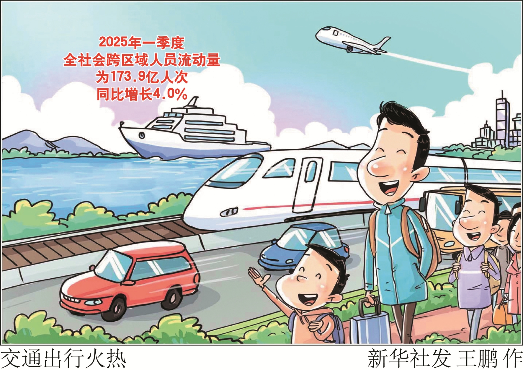交通出行火热 4月24日,交通运输部发布数据显示,2025年一季度全社会跨区域人员流动量为173.9亿人次,同比增长4.0%。全社会跨区域人员流动持续旺盛。 (新华社发)