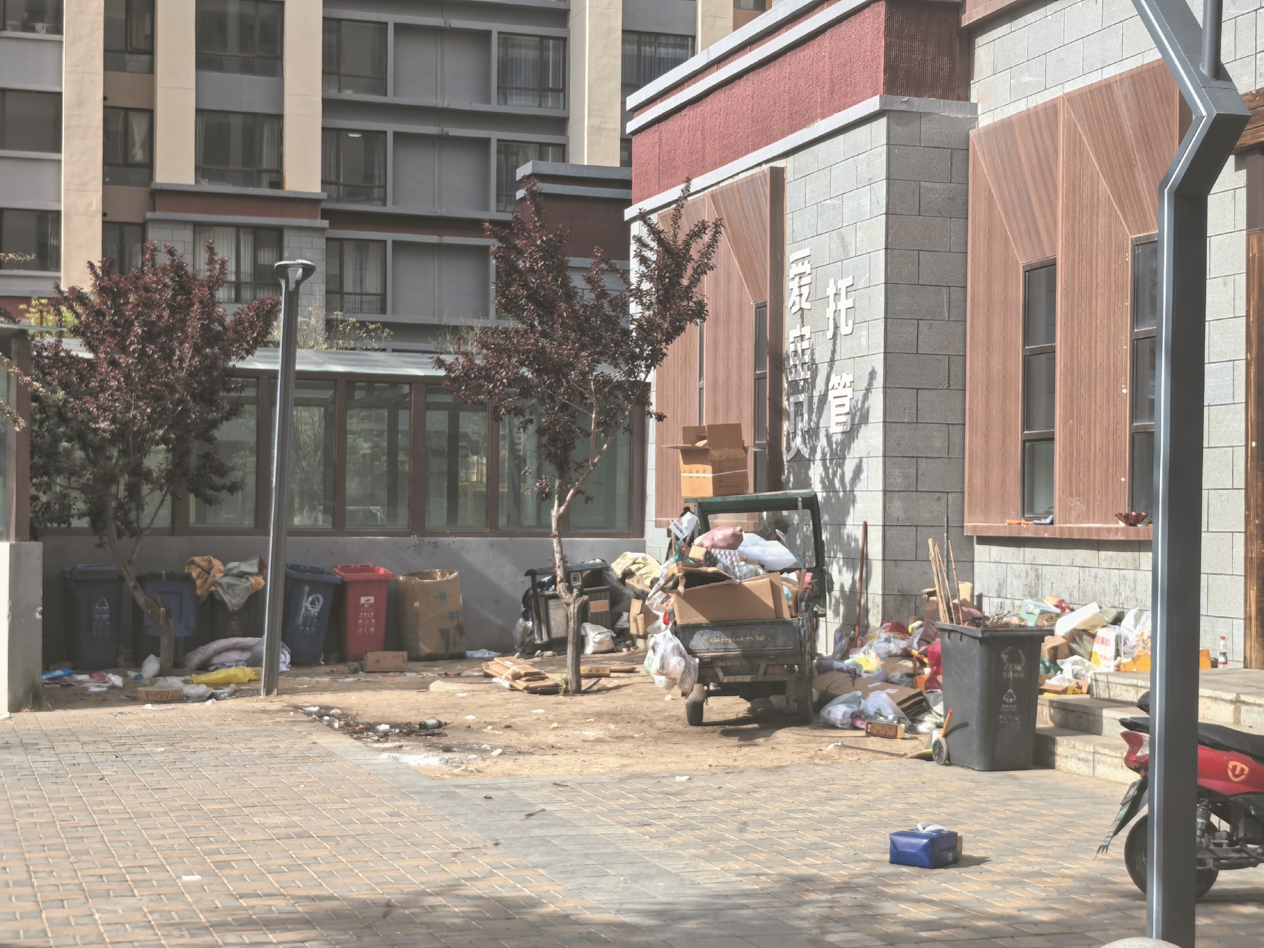 图为领秀翡翠湾小区一角堆满垃圾。拉萨融媒记者 次央卓摄