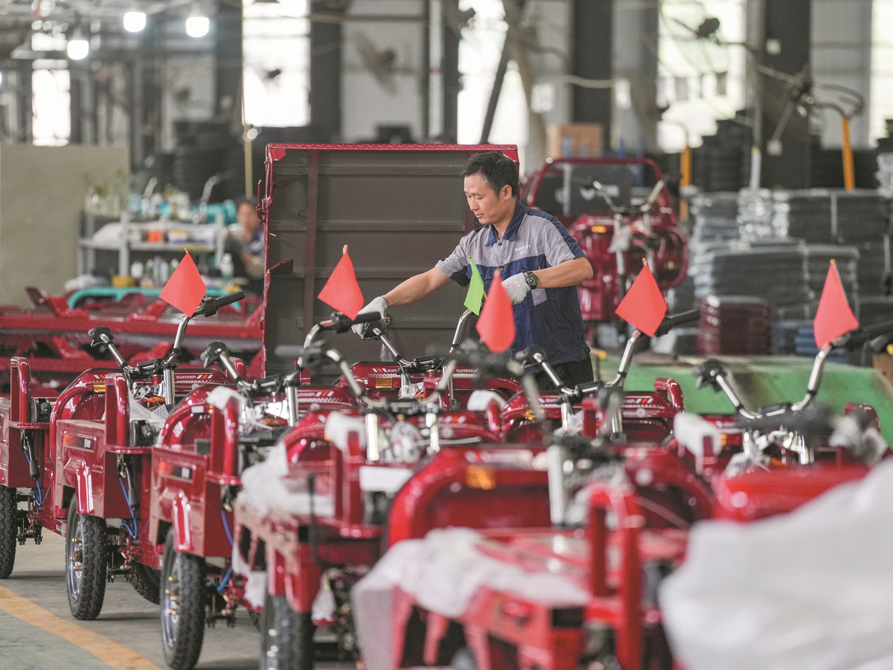 在四川眉山天府新区双胜新能源车业有限责任公司的生产车间流水线上,工人们正紧锣密鼓组装一批即将发往非洲、东南亚的电动三轮车。