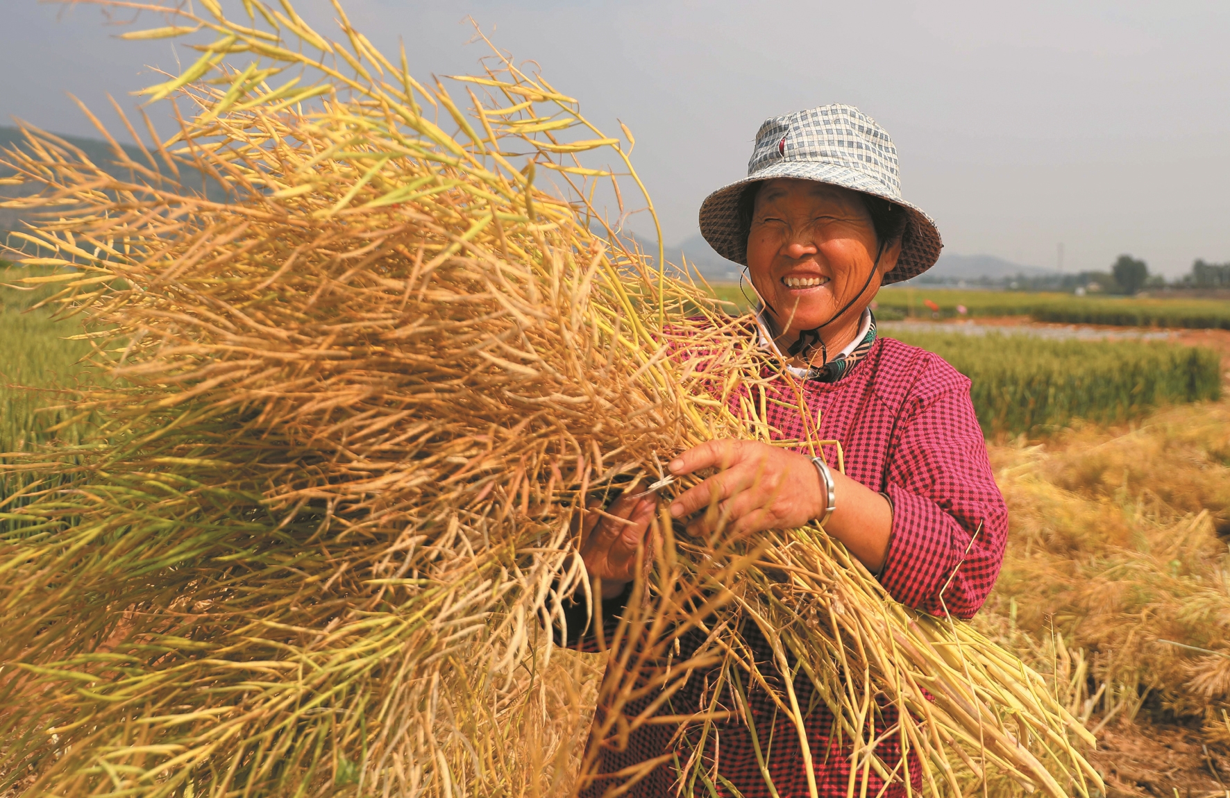 近期,我国部分地区油菜进入收获期,农民抢抓农时,收获油菜。