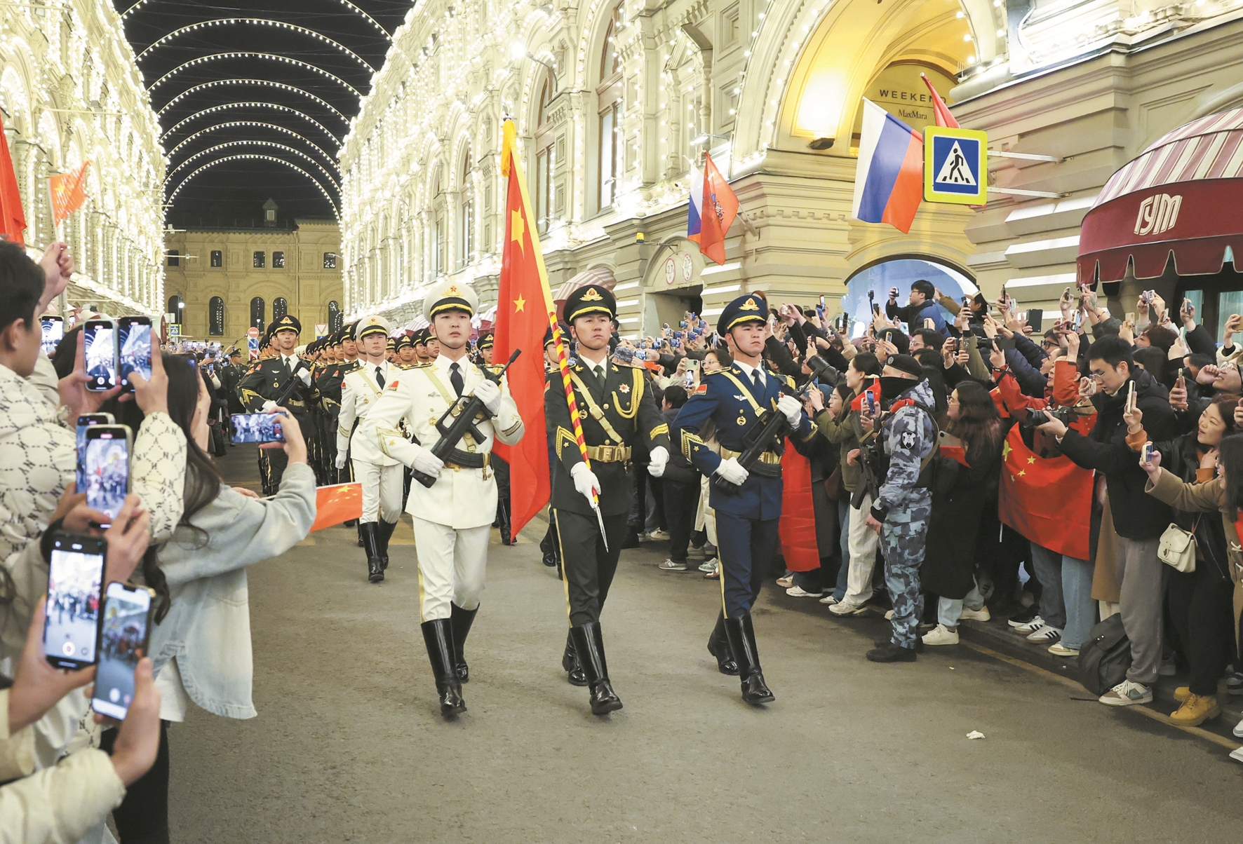 2025年5月3日,在俄罗斯首都莫斯科,中国人民解放军仪仗司礼大队参加纪念苏联伟大卫国战争胜利80周年阅兵式彩排。 新华社记者 姚大伟摄