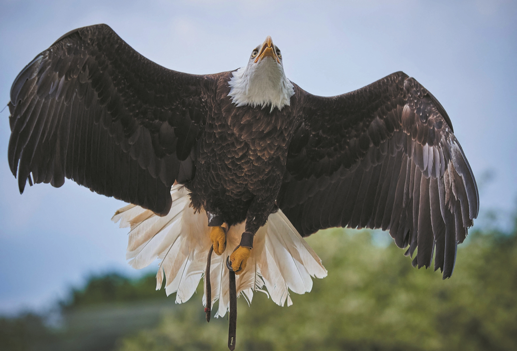 ↓这是5月7日在法国圣艾尼昂博瓦勒野生动物园一场飞鸟秀上拍摄的白头海雕。