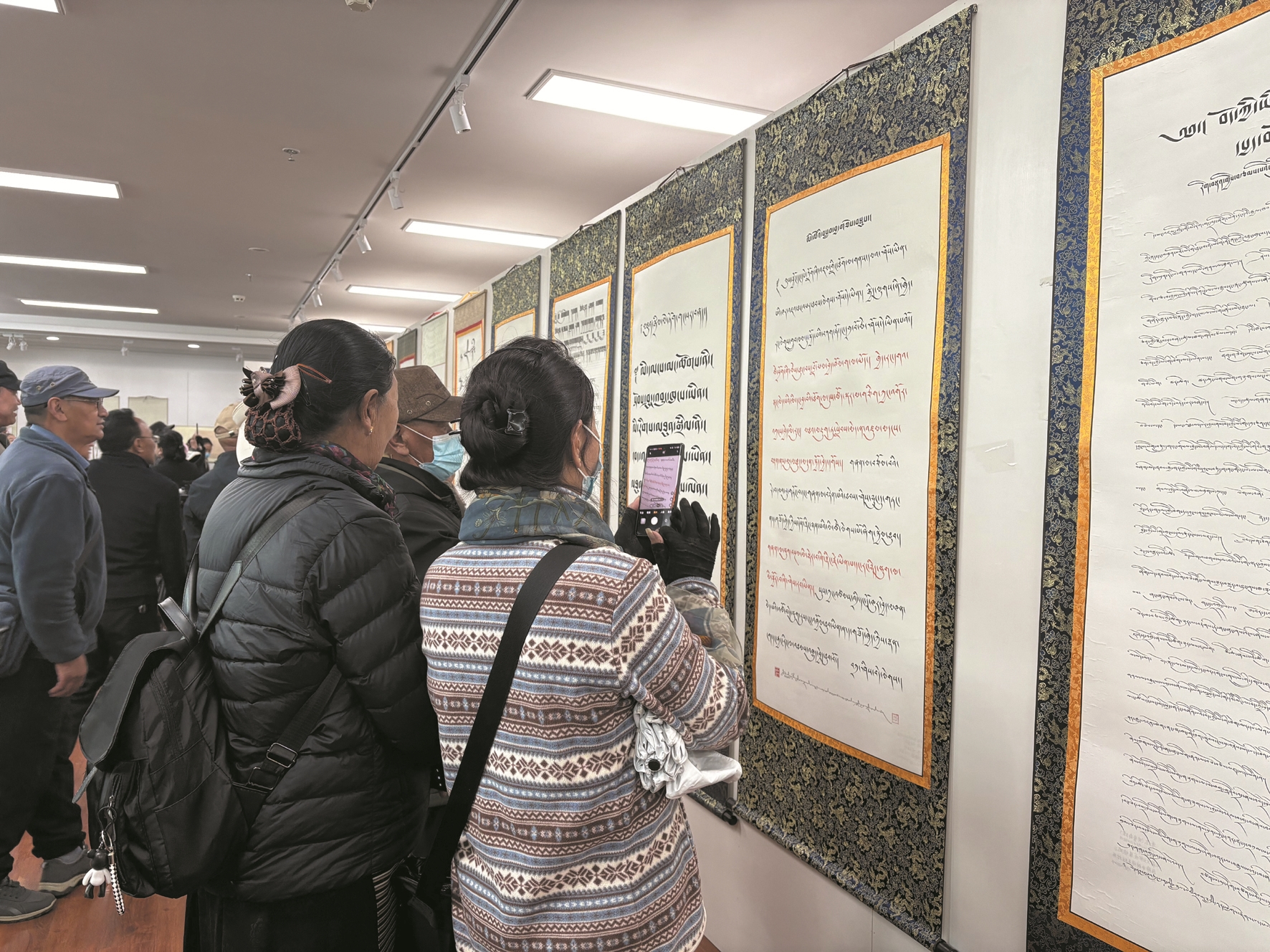 图为老干部们参观书画作品展。拉萨融媒记者 莫瑞英摄