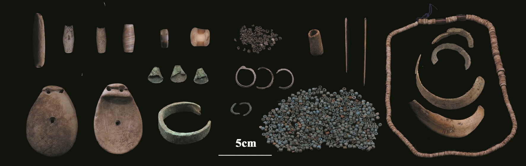 除了陶器和农作物,遗址中出土的其他遗物同样令人惊喜。早期遗存中的骨蚌器、水晶细石器,表明此时期骨器制作工艺达到较高水平。出土的海贝、象牙、青铜器、玛瑙、红玉髓、费昂斯等外来饰品,暗示着远距离贸易流通的存在,填补了高原地区跨区域文化交流研究的诸多空白。