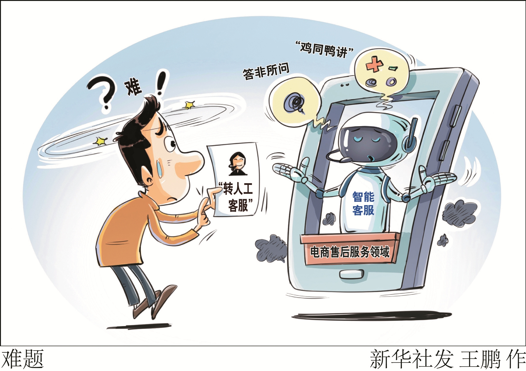 解决“转人工”难题,当务之急是优化接入流程、提升人工客服应答率。要明确人工服务接入方式,简化接入程序,尤其是针对老年人、残障人士等特殊群体设置“一键转人工服务”等便捷功能;要合理安排智能客服与人工客服的比例,及时响应消费者需求;还要厘清智能客服、人工客服的职责边界,让服务更有效能。