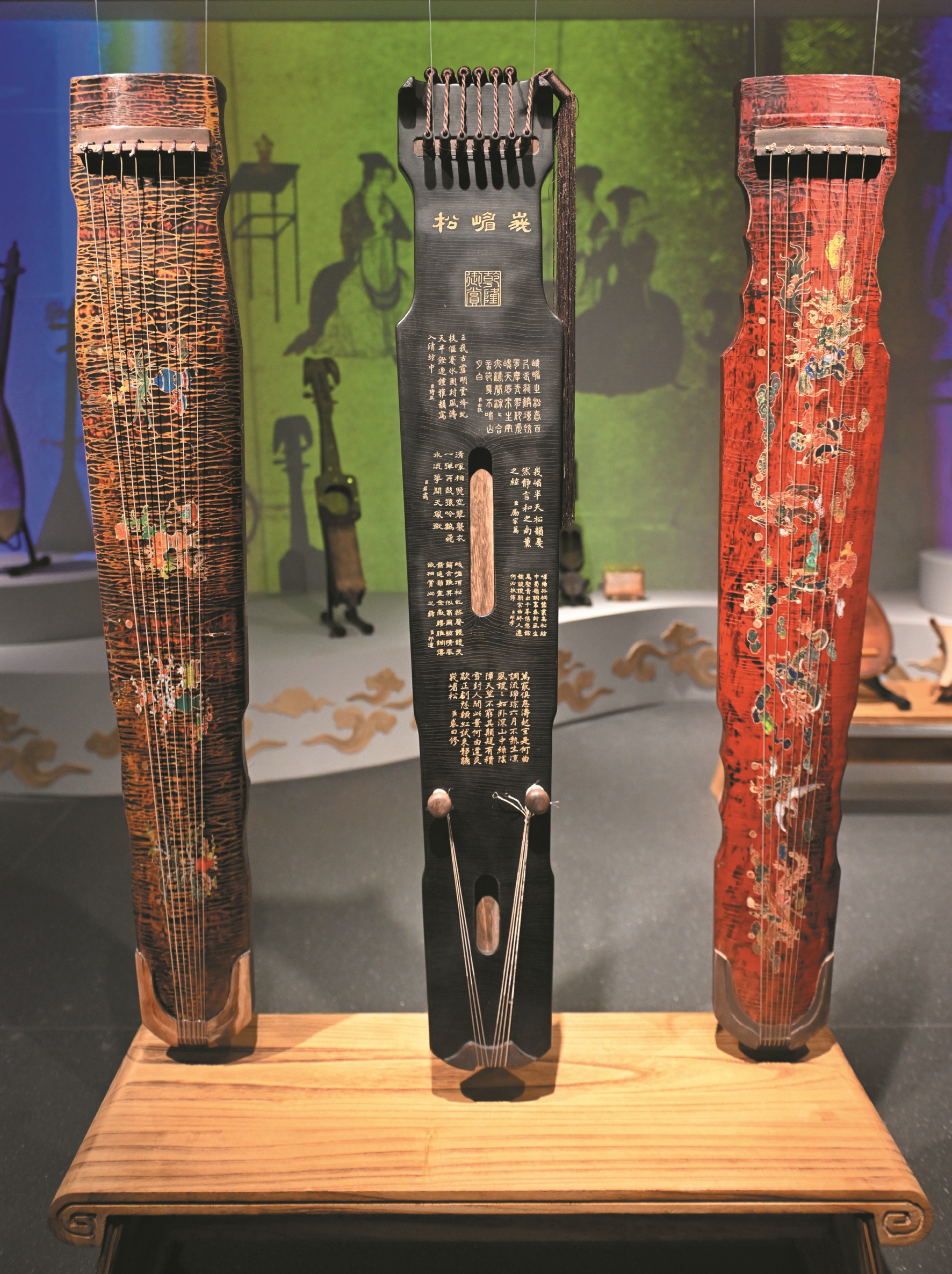 图④为成都芯智慧音乐博物馆展出的中国古琴(5月11日摄)。