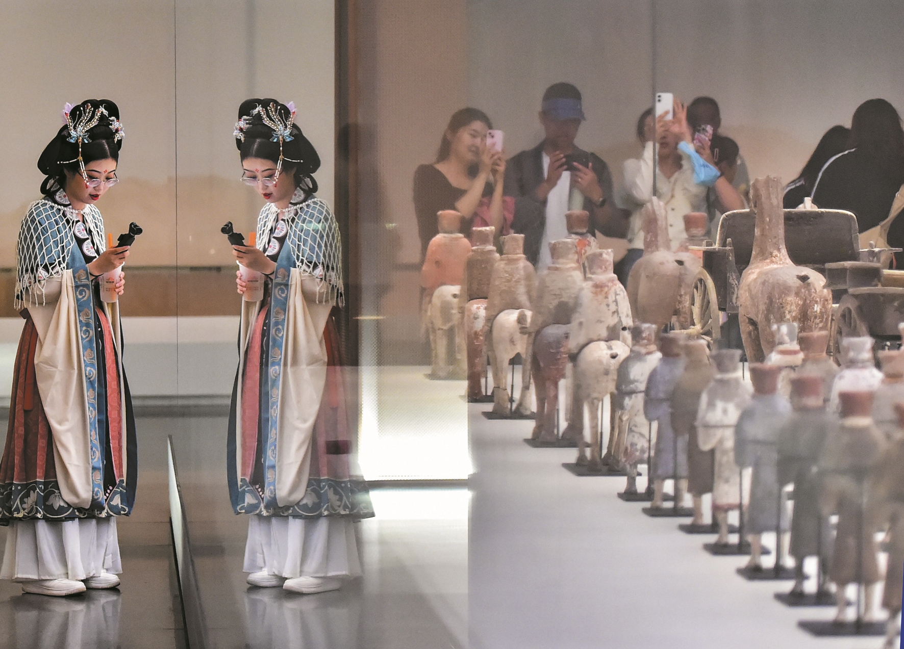“这就是博物馆的魅力之一,大量陶器无法确定其准确用途,但参观者可以尽情发挥想象。”李洁说,有参观者就将其与当下短视频平台较火的“兄弟同心杯”对比,戏称数千年前也有“兄弟同饮”。“我们看它腹部相通,或许是最早期氏族部落之间以求和平的祭祀器。”李洁说。