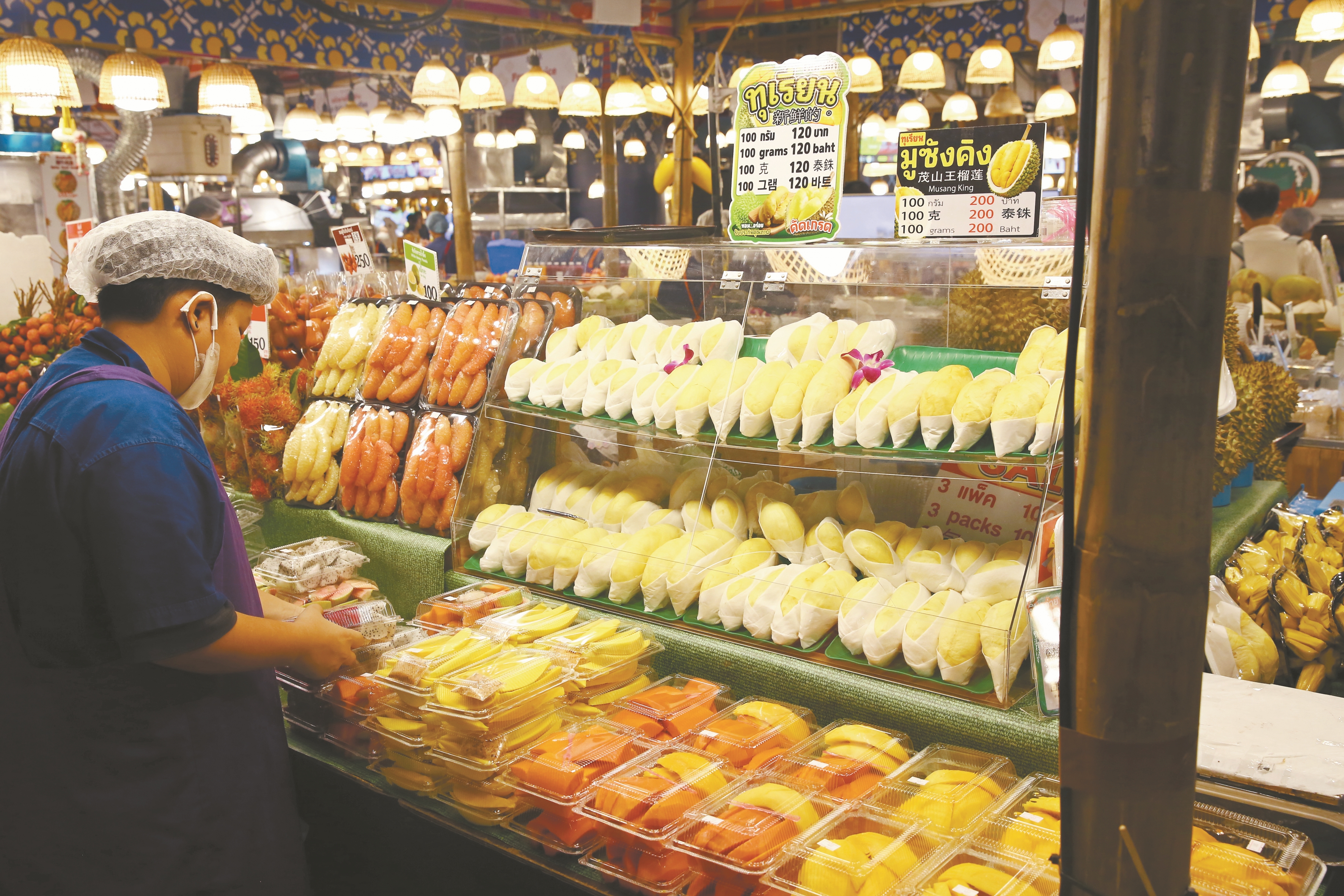每年4至5月是泰国东部榴莲产区的收获高峰期。作为泰国东部的重要榴莲产地,坐落于庄他武里府的隆县也是泰国最大的榴莲处理及转运中心之一。从榴莲果园收获的榴莲在此进行称重、分拣、包装,并运往海外。而在这个时节的泰国首都曼谷,大街小巷都会出现榴莲的身影。