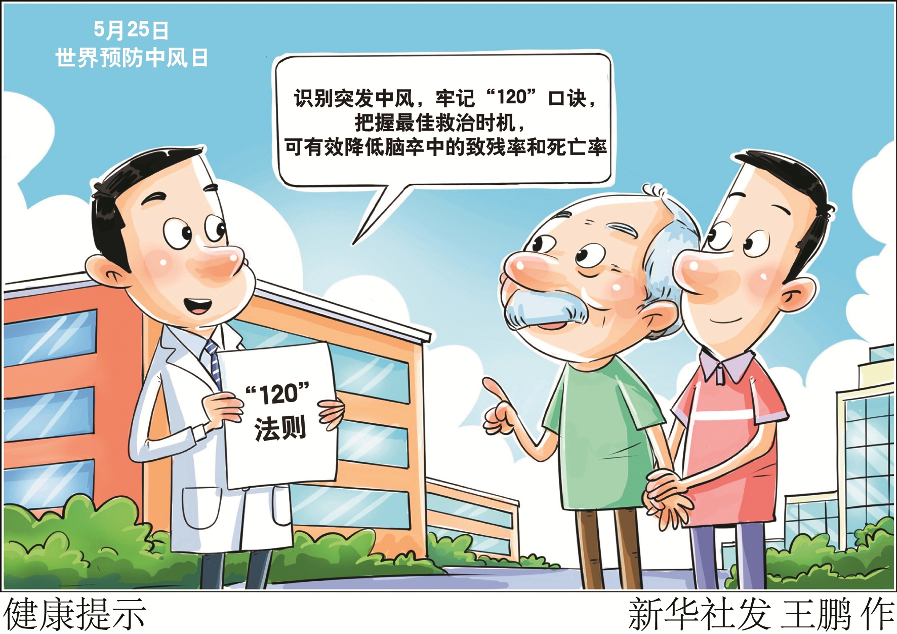 5月25日是世界预防中风日,专家表示,识别突发中风,要牢记“120”口诀,把握最佳救治时机,可有效降低脑卒中的致残率和死亡率。