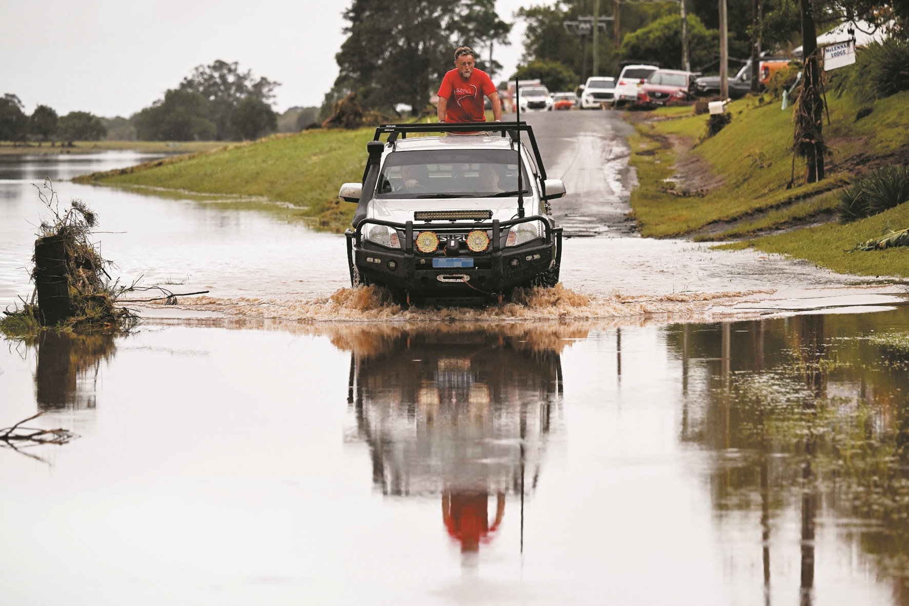 图为5月23日,在澳大利亚塔里,居民驾车驶过洪水过后积水的街道。 (新华社发)
