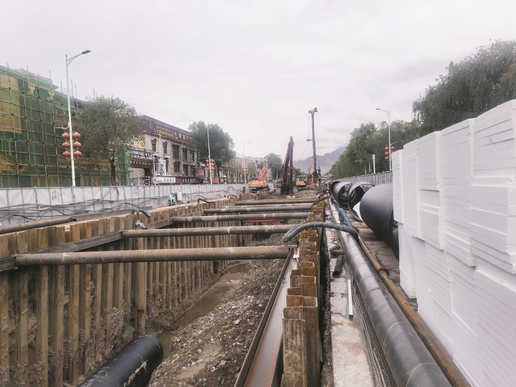 鲁定路、当热路优化改造工程三标段西起德吉路,东至色拉路,全长2.25公里。在施工过程中,施工方坚持安全、质量、进度并重,着力打造民心工程、品质工程,通过倒排工期、挂图作战,精准调度进场材料,确保每日作业无缝衔接。同时,采取24小时不间断施工模式,科学灵活调配作业内容与时间,打钢板桩、土方开挖等噪音较大的工序集中在白天开展,管道安装、混凝土浇筑等工序则在夜间进行,最大限度减少对市民群众正常生活秩序的影响。目前,该标段雨水管改造工程完成85%、电力通信排管完成67%、污水工程完成33%、给水工程完成45%,完成总体形象进度的44.24%。