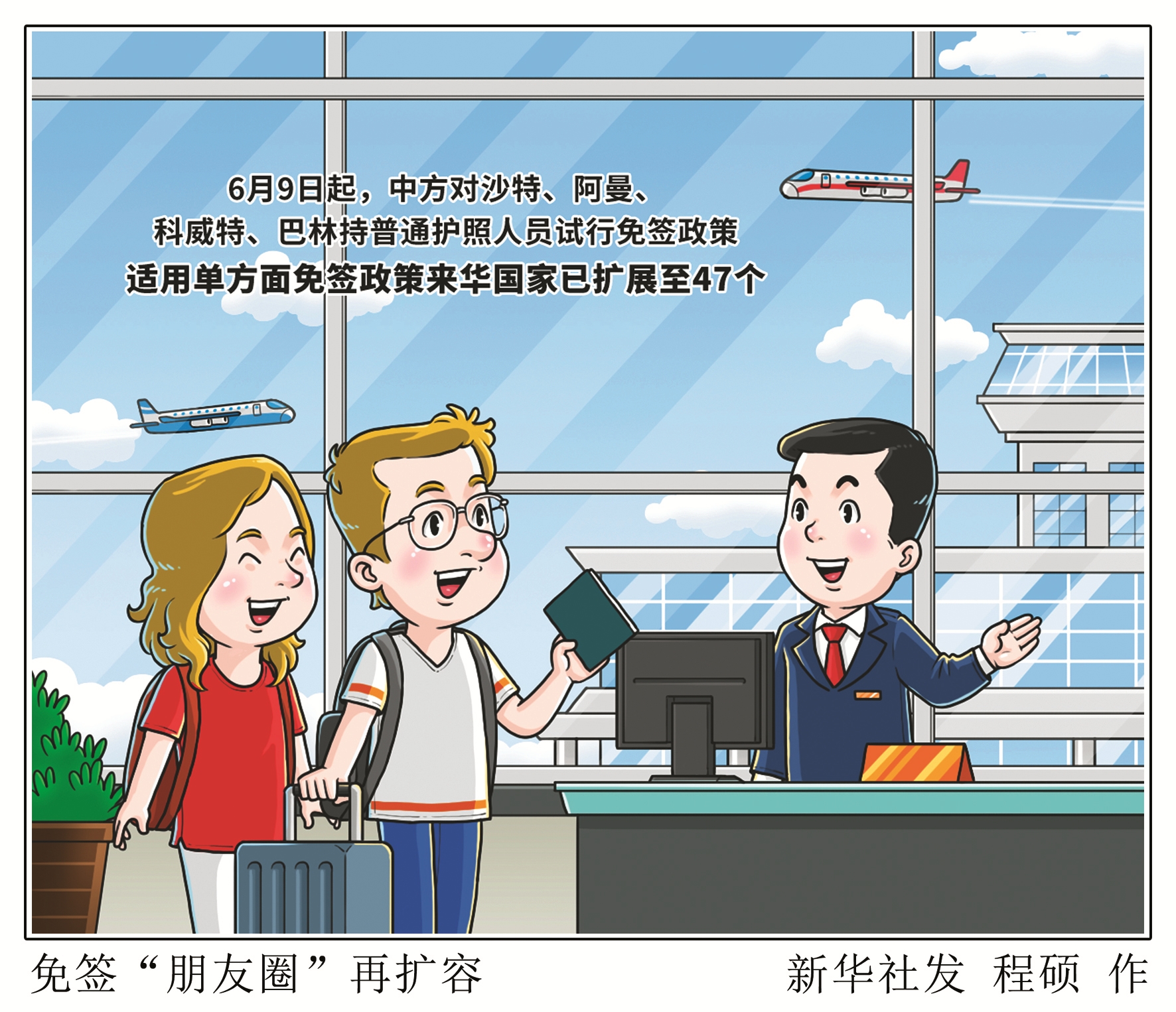 6月9日起,中方对沙特、阿曼、科威特、巴林持普通护照人员试行免签政策。至此,适用单方面免签政策来华国家已扩展至47个。(新华社发)