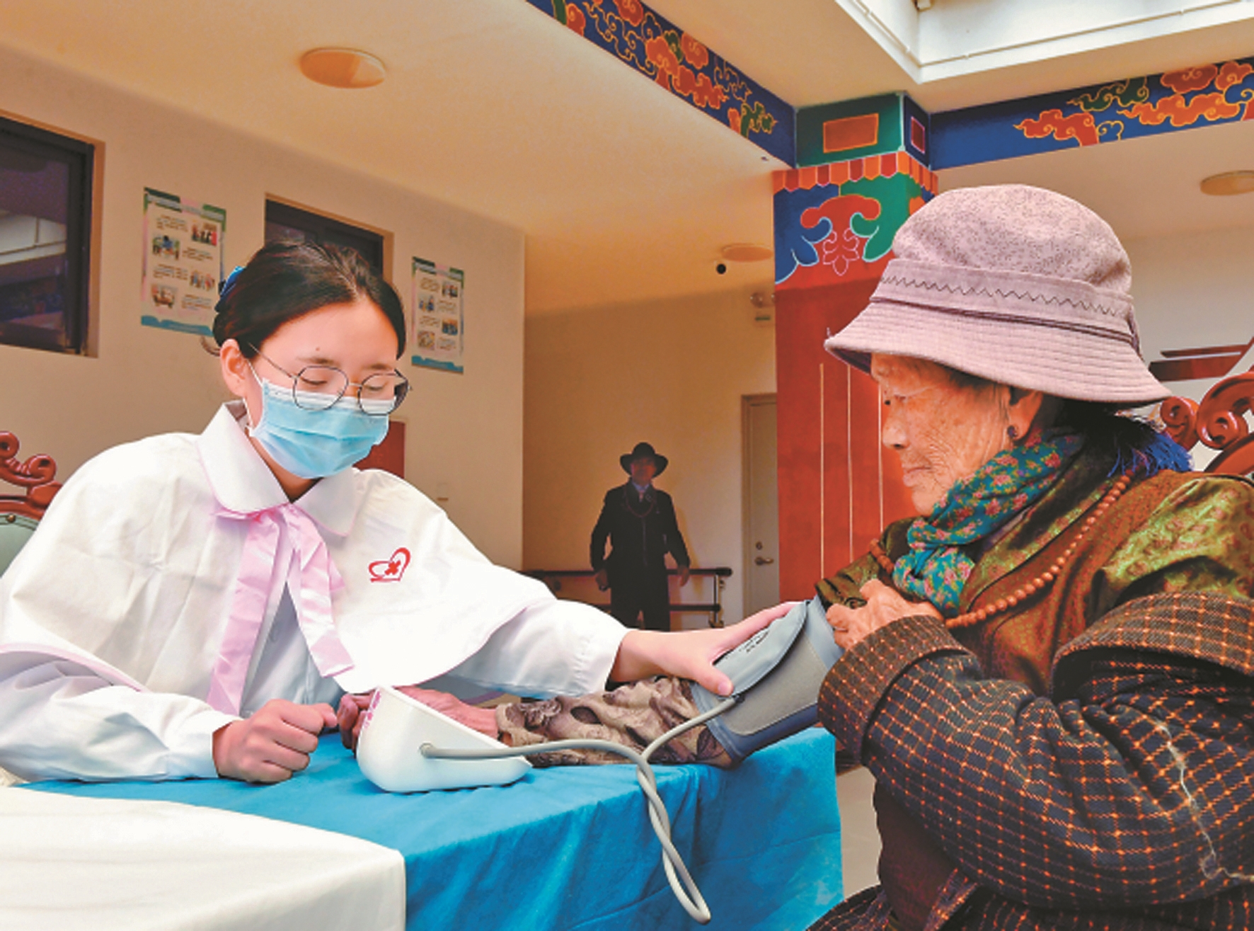 活动现场,拉萨市人民医院的医护团队为老人们提供了血压测量、健康咨询等义诊服务,并发放各类药品,普及慢性病防治知识,受到一致好评。