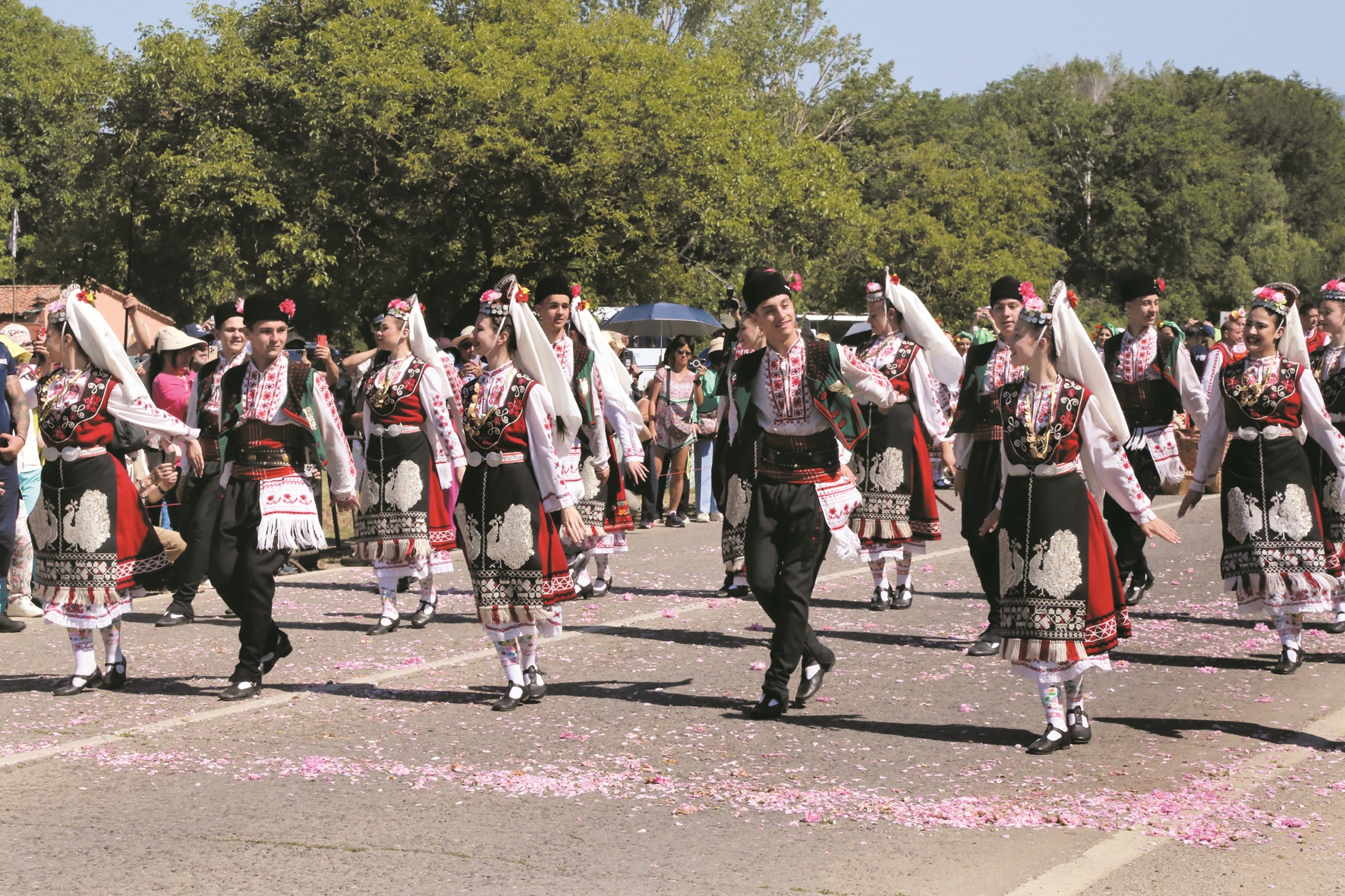 正午时分,盛大的狂欢游行在卡赞勒克市中心举行。来自保加利亚及世界各地的不同团体在狂欢游行中尽情展示才艺,把快乐与喜悦传递给每一位在场观众。