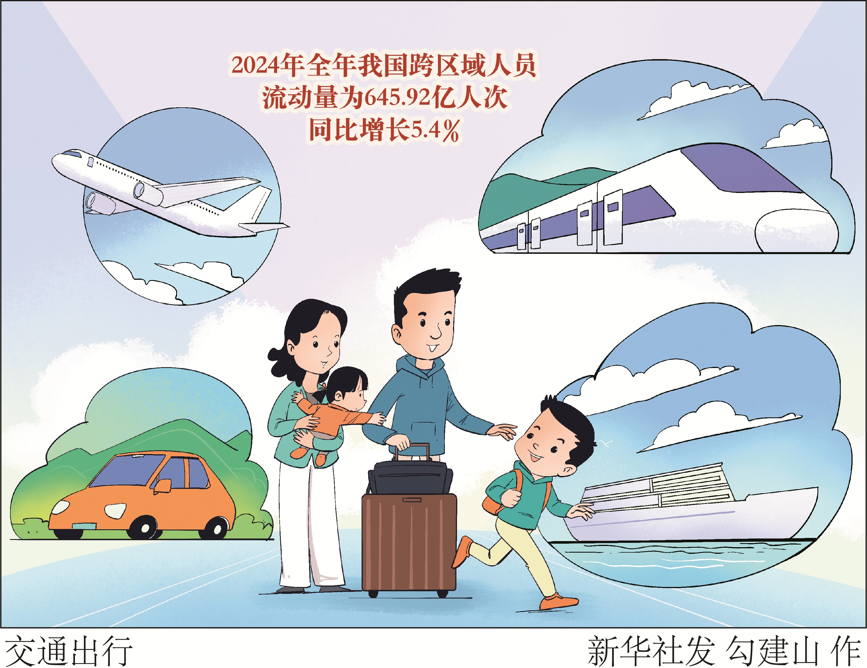 交通运输部6月12日发布的《2024年交通运输行业发展统计公报》显示,2024年全年我国跨区域人员流动量为645.92亿人次,同比增长5.4%。