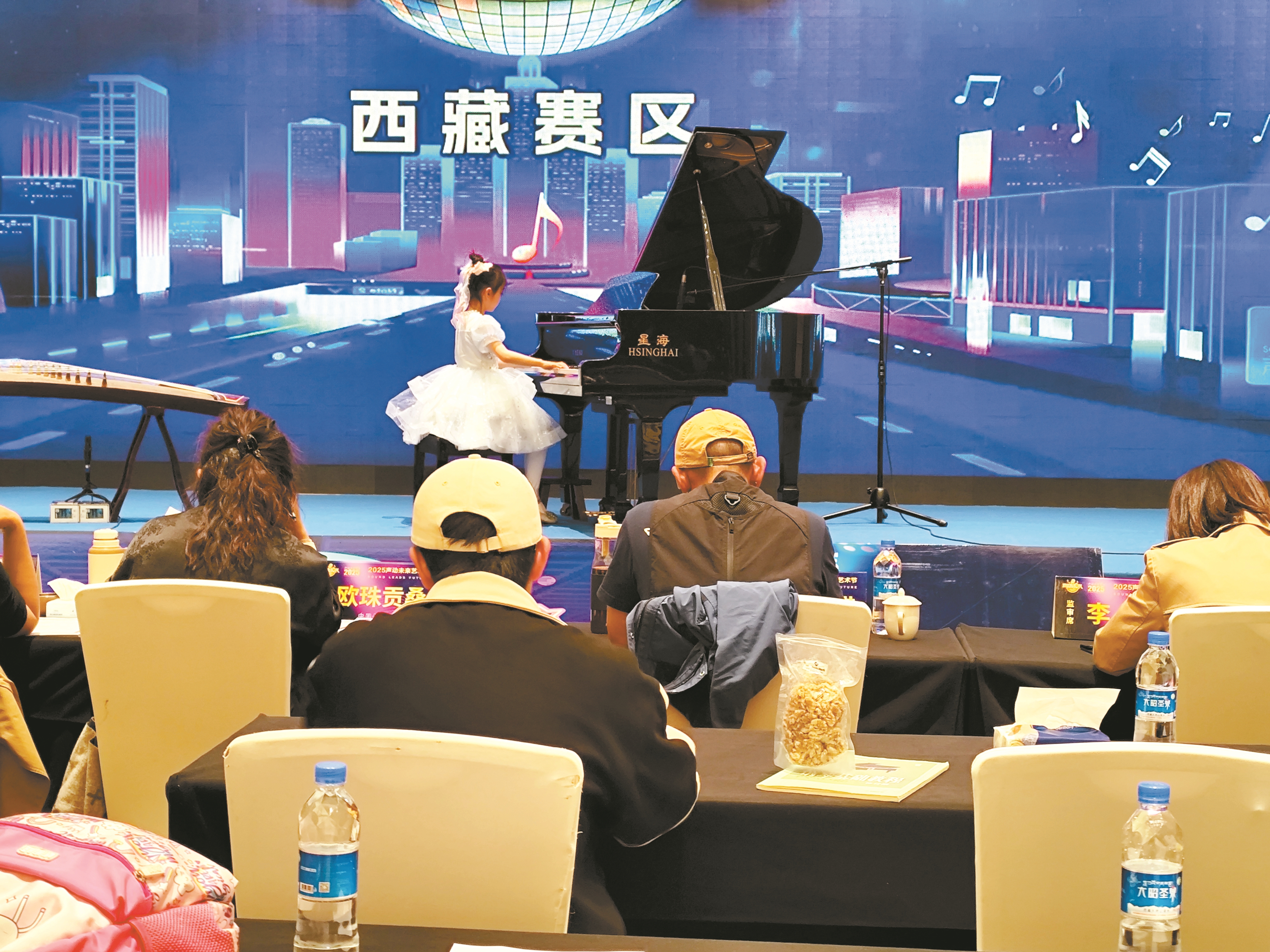 图为来自拉萨市实验小学、纳金小学等学校的参赛选手正在进行古筝、钢琴和朗诵项目的才艺比赛。拉萨融媒记者 齐永昌摄