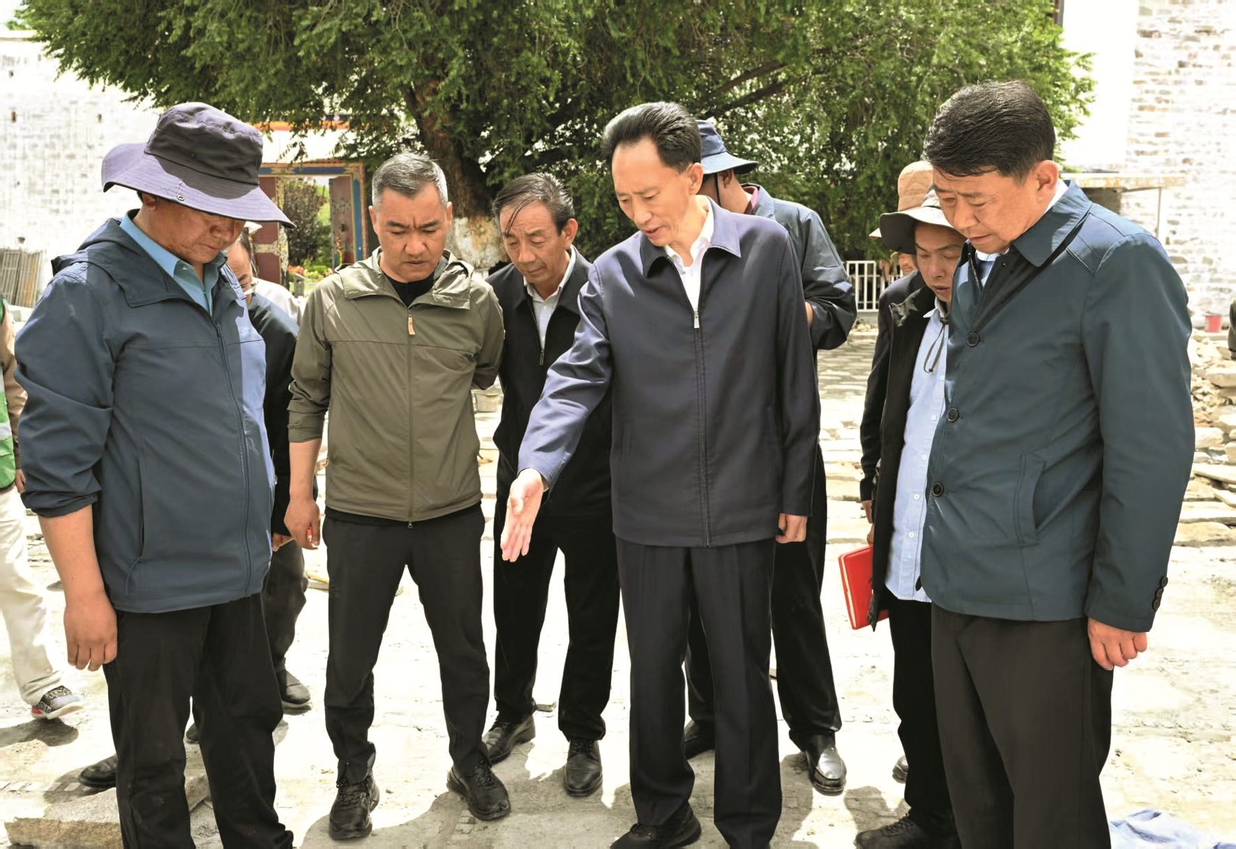 随后,肖友才来到布达拉宫停车场,现场提出问题,明确整改要求。指出,要严把工艺质量,精雕细琢每个环节、每个细节,做到既体现民族特色、文化底蕴,又兼顾实用性和耐久性。要严抓建设管理,强化效率意识,加快工程进度,确保早完工、早见效。