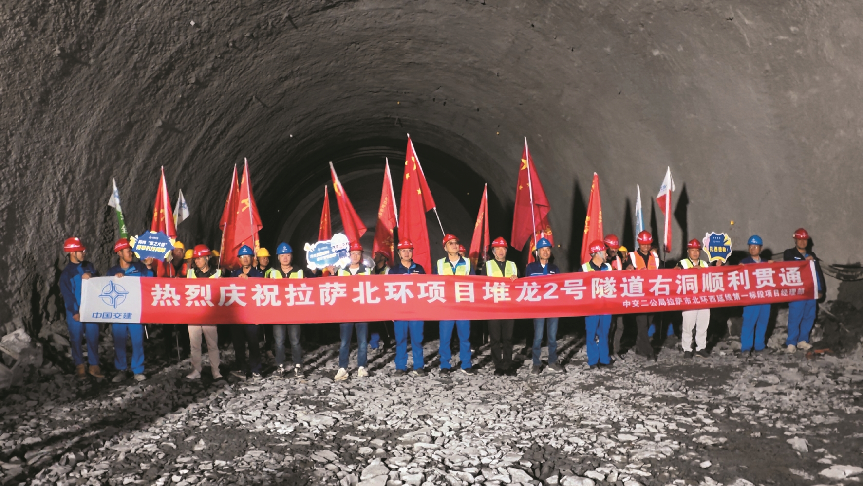 中交二公局承建的拉萨北环西延线项目第一标段起点位于北京西路堆龙德庆区与城关区交界处,道路全长5.17公里。本标段包括道路工程、桥梁工程、隧道工程、管线工程、照明工程、环保工程等。堆龙2号隧道全长1780米(双洞平均长度)。