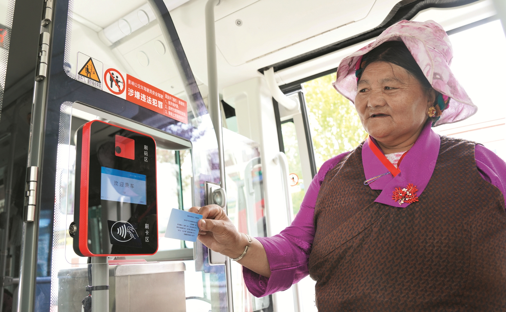 在便民服务中心站点,市民贡觉伦珠边用手机支付车费边感慨:“座椅宽敞舒适,广播报站清晰明了,再也不用担心坐过站了。”