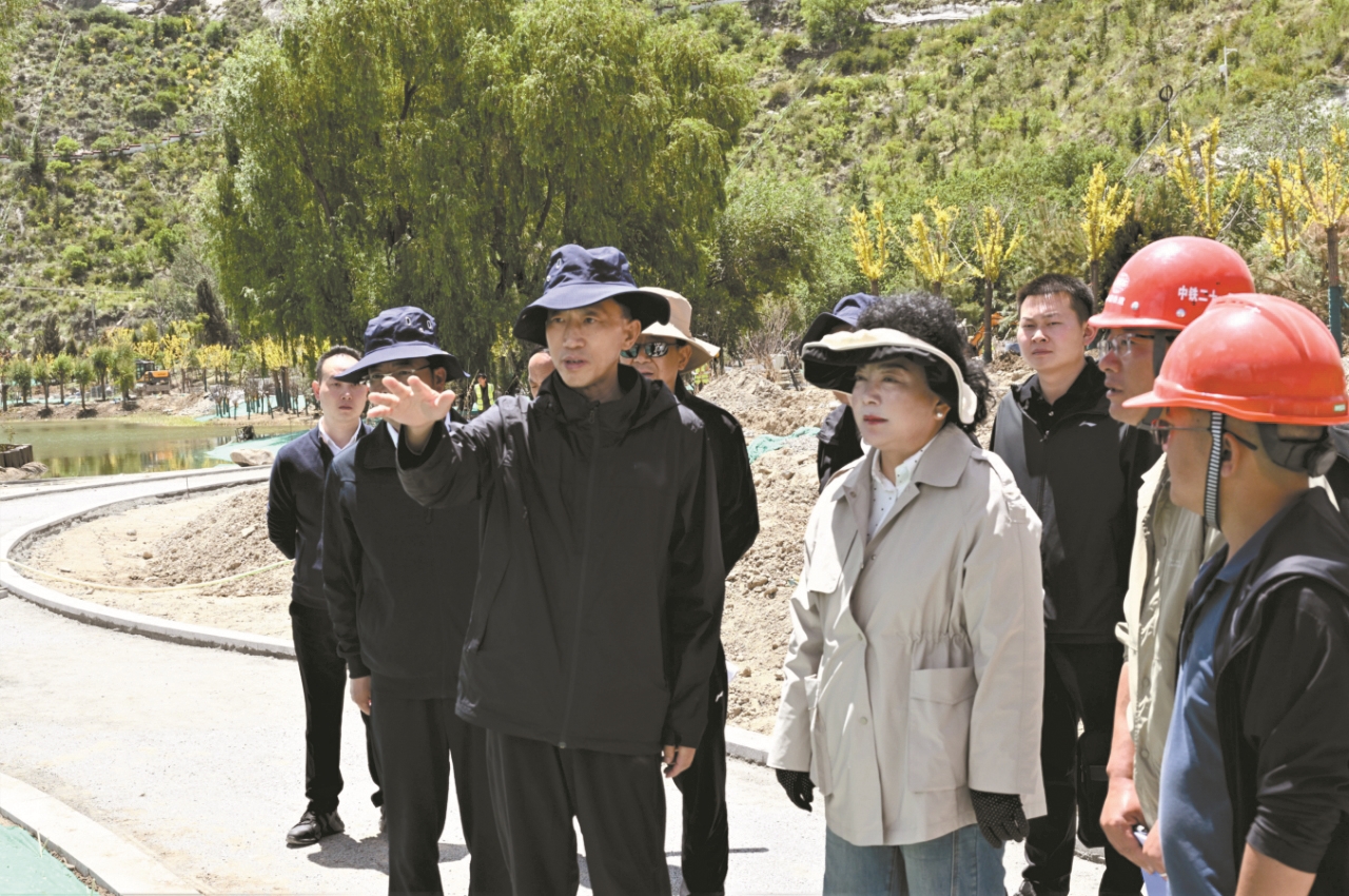 6月29日,自治区党委常委、拉萨市委书记肖友才深入滨河公园、药王山环境整治工程一线,实地调研督导城市建设管理工作。拉萨融媒记者 巴桑次仁摄