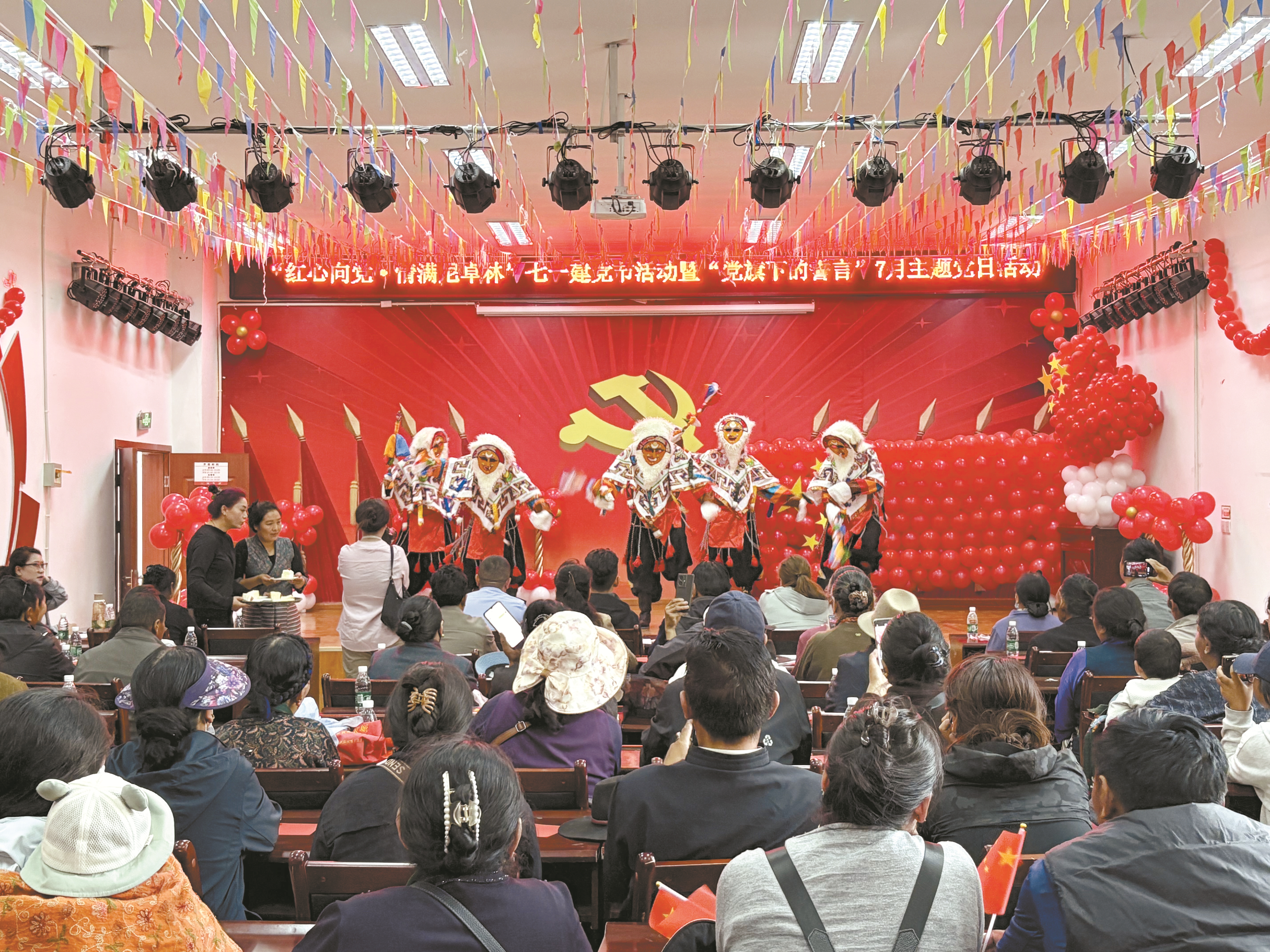 图为在尼卓林社区迎“七一”建党节暨“党旗下的誓言”主题党日活动中,社区文艺队与群众文艺队带来的精彩表演。 拉萨融媒记者 仁青拉姆摄