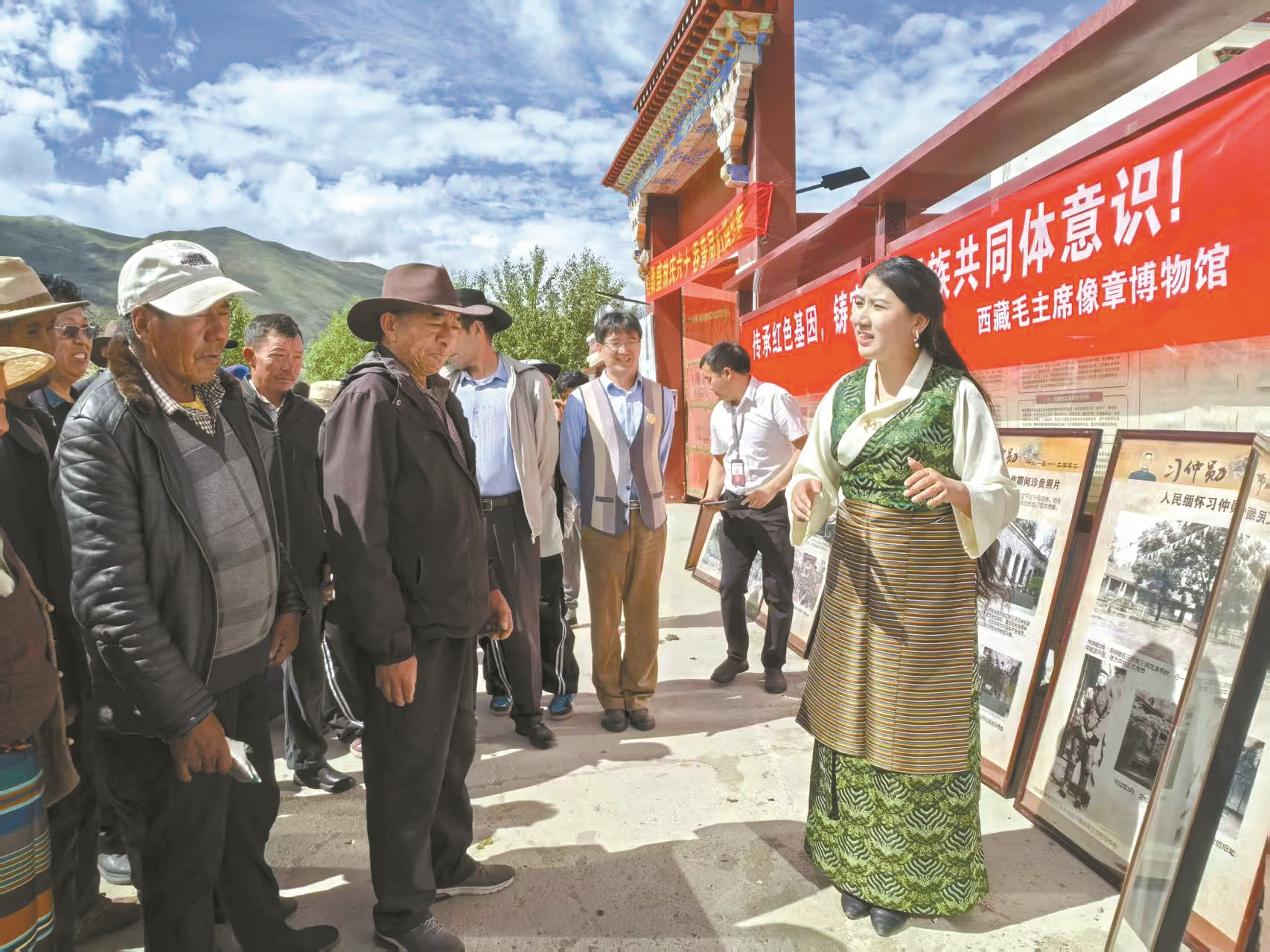 图为工作人员为吞普村党员群众讲解展板内容。 拉萨融媒记者 齐永昌摄