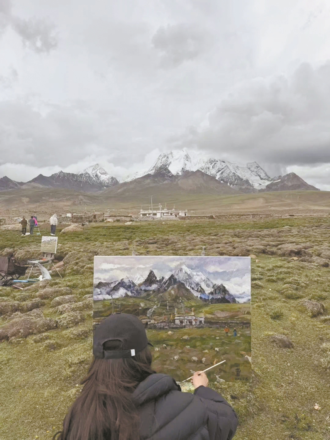 图为采风活动现场,画家们挥毫作画。 拉萨融媒记者 满文妍摄