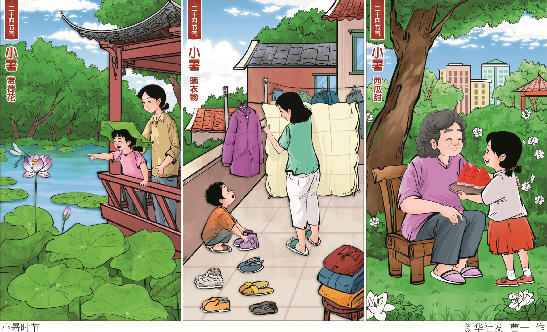 《月令七十二候集解》记载:“六月节……暑,热也,就热之中分为大小,月初为小,月中为大,今则热气犹小也。”虽未达酷暑巅峰,却意味着天气开始炎热。这时江淮流域梅雨即将结束,气温升高,进入伏旱期;而华北、东北地区进入多雨季节。蒸腾的热气催促着人们寻觅清凉之道,避暑消暑的智慧由此而生。