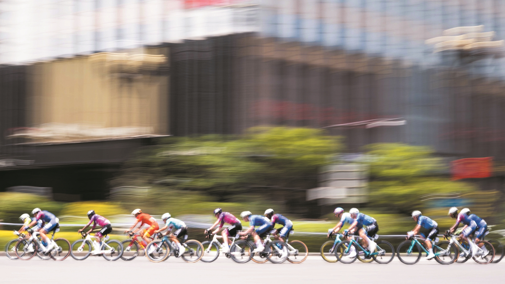 7月6日,环大美青海国际公路自行车赛进行第一赛段西宁绕圈赛。