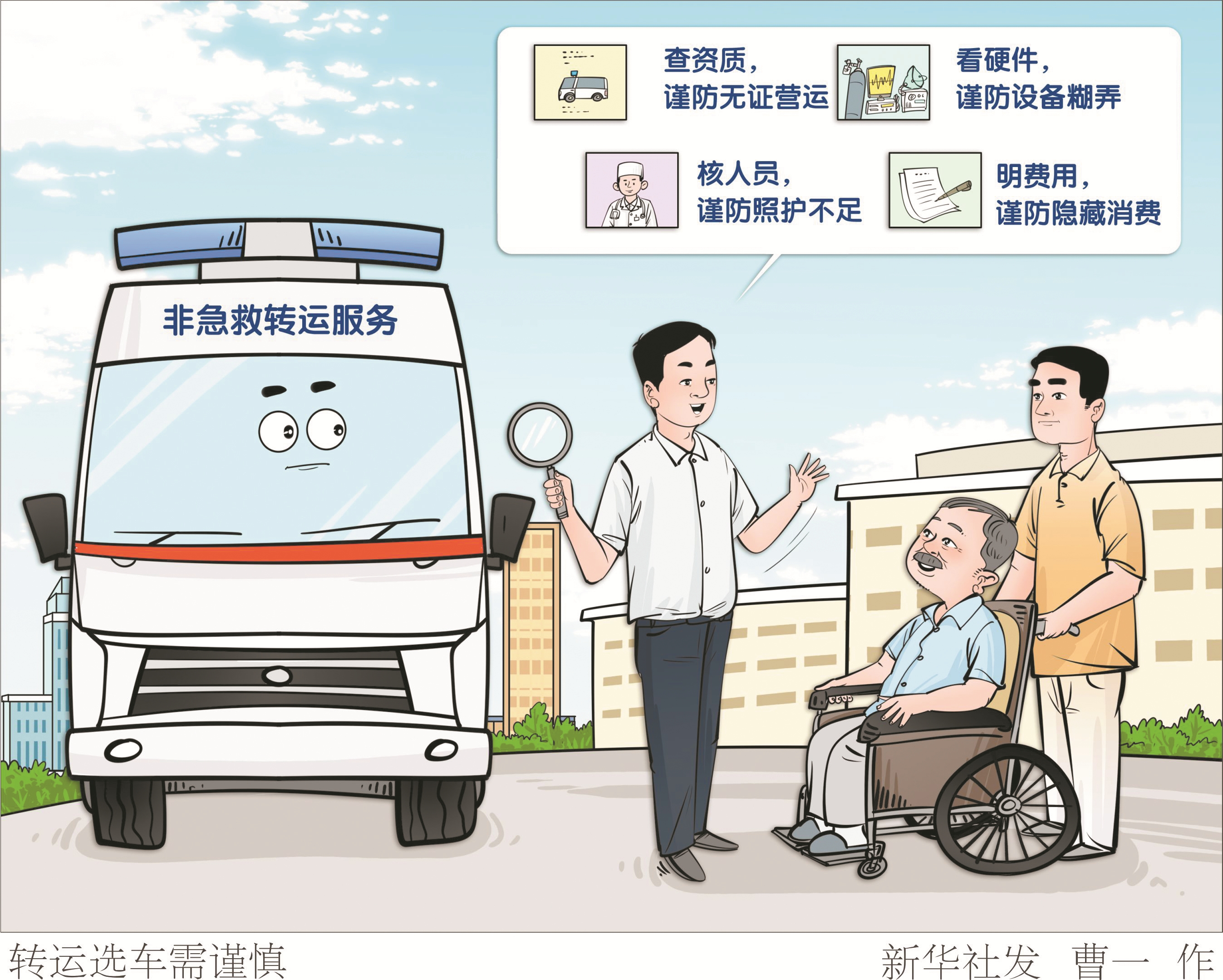 心急火燎之间,是否轻信了医院门口“中介”推销?转运病人途中,如何避免医疗照护“掉链子”?相关专家在接受采访时,为病人非急救转运选择车辆给出几个建议: