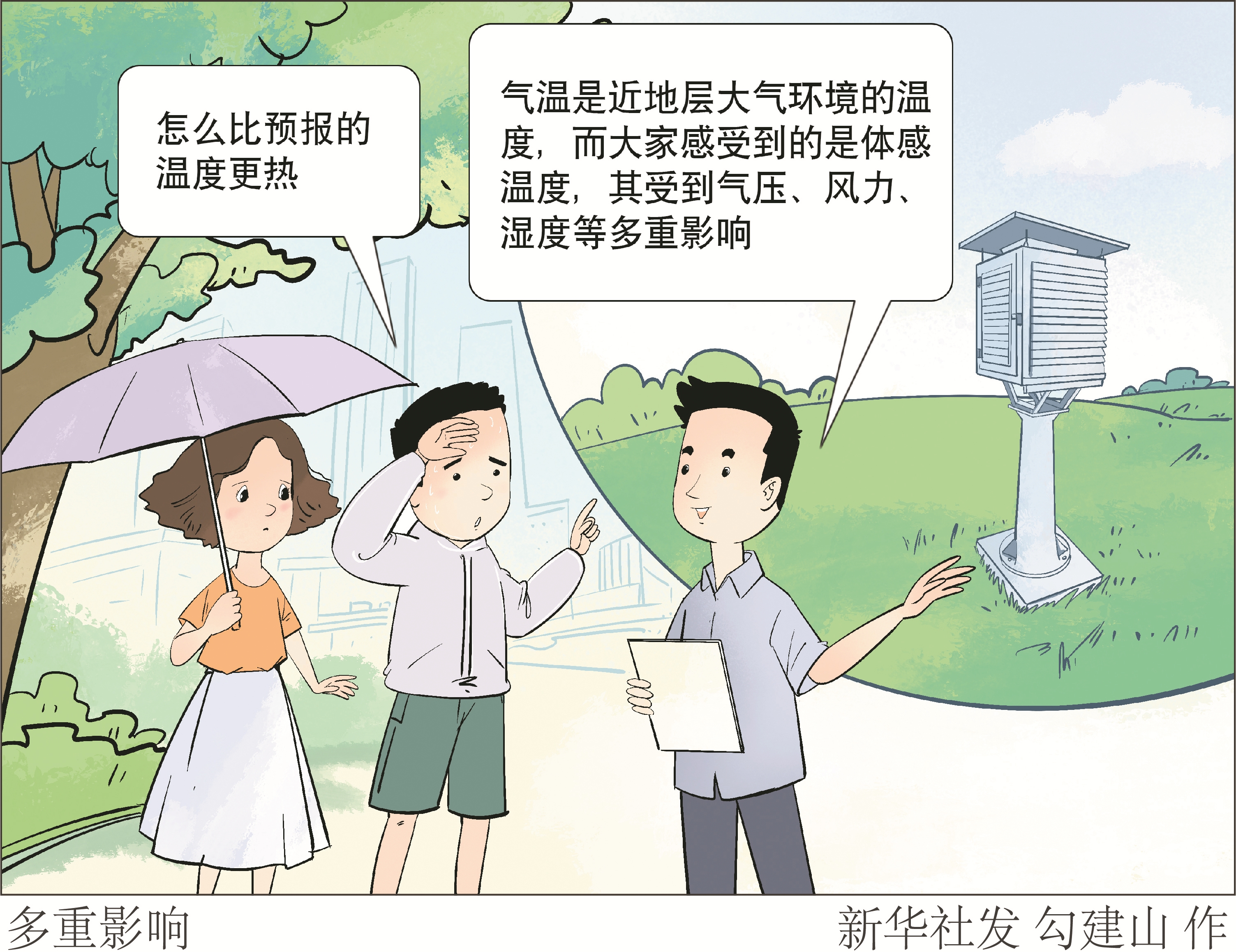 “因为气象的观测环境和个人在室外的环境是不一样的。气温是近地层大气环境的温度,而大家感受到的是体感温度,其受到气压、风力、湿度等多重影响。”朱定真说。