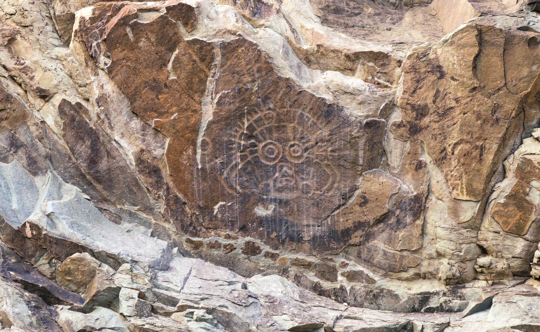 这是7月23日拍摄的贺兰山岩画景区内著名的标志性岩画“太阳神”(无人机照片)。新华社记者 杨植森摄