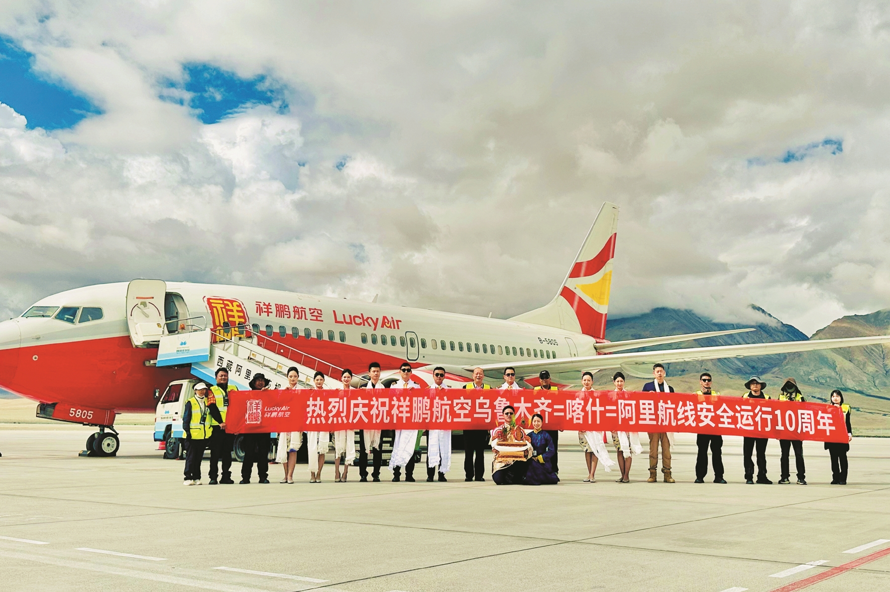 10年来,乌鲁木齐—喀什—阿里航线累计执行航班超1470班次,累计运输旅客逾12万人次,极大地促进了新疆和西藏两地的交流与发展。10年来,祥鹏航空以蓝天为纸、航线为墨,擘画出一张覆盖拉萨、阿里,连接北京、成都、昆明、西宁、郑州、绵阳、乌鲁木齐、喀什等多个城市的进出藏航线网络,架起了民族团结与区域协同发展的空中桥梁。