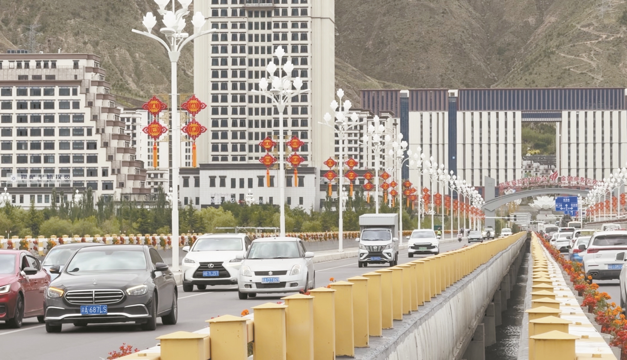 图为灯饰已安装调试完成的3号闸大桥。 拉萨融媒记者 董 晖摄