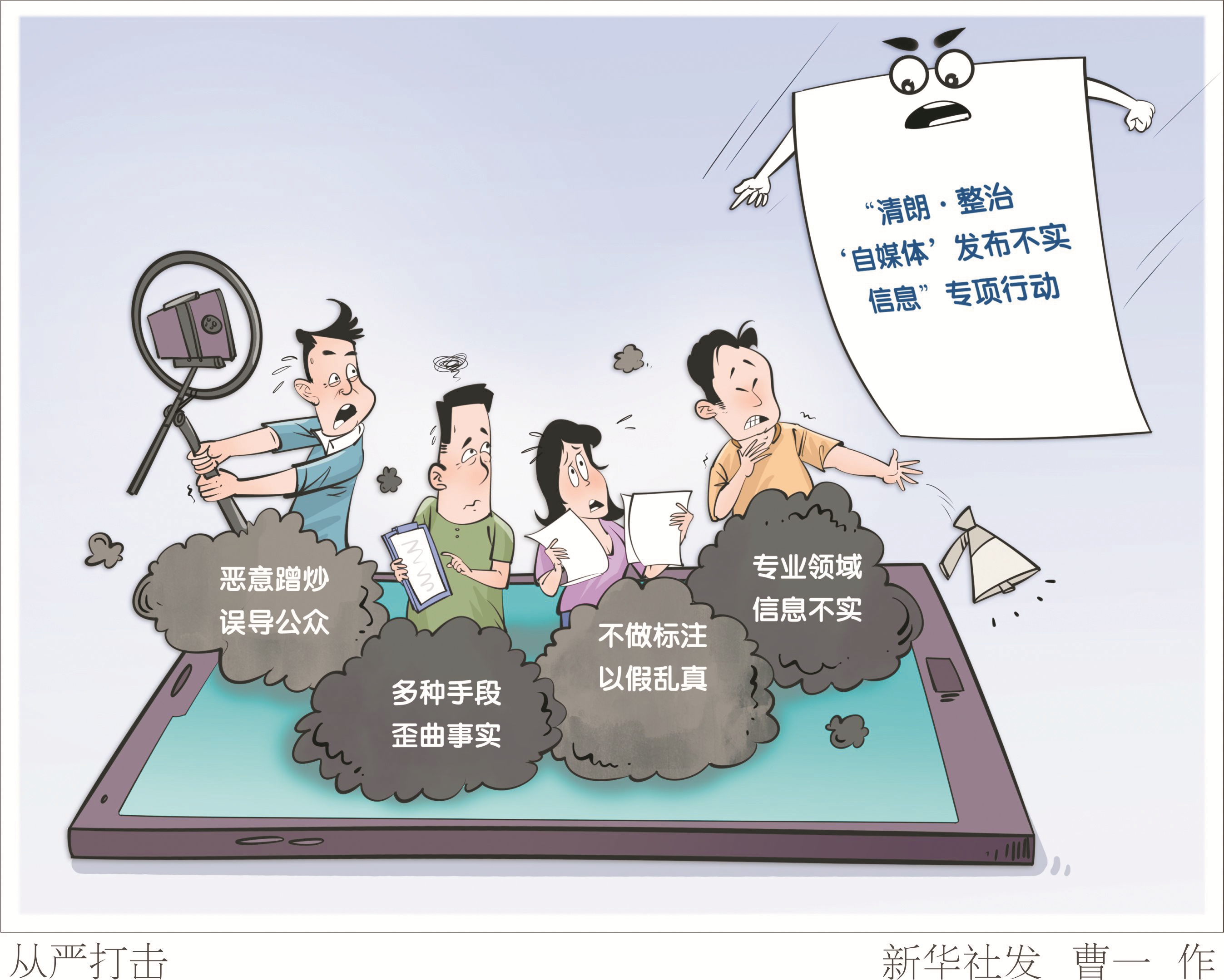 记者7月29日从中央网信办获悉,为进一步规范“自媒体”信息发布行为,按照2025年“清朗”系列专项行动总体安排,中央网信办决定在全国范围内启动为期2个月的“清朗·整治‘自媒体’发布不实信息”专项行动,从严打击恶意蹭炒误导公众、多种手段歪曲事实、不做标注以假乱真、专业领域信息不实等4类突出问题。