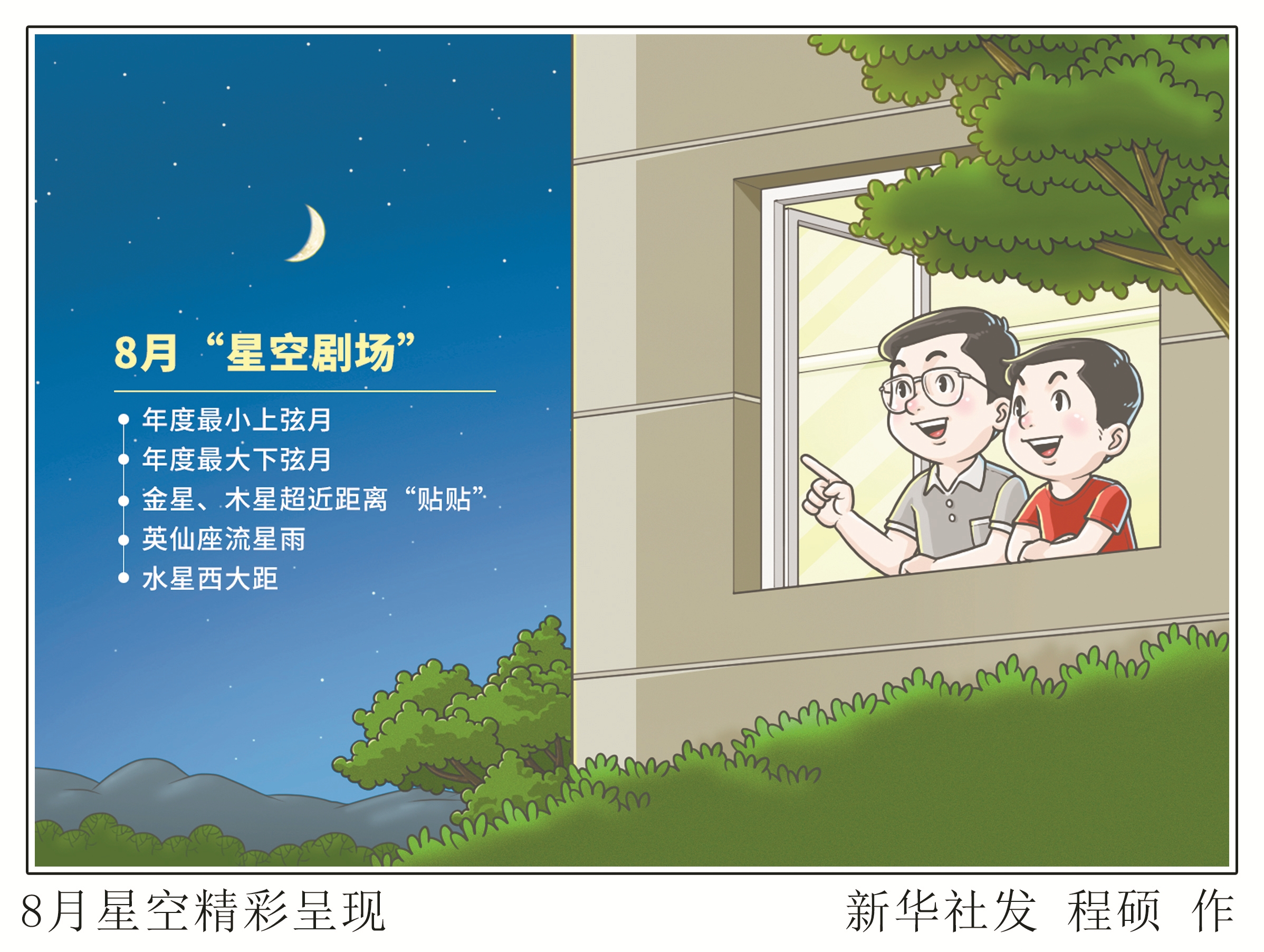 8月“星空剧场”的节目单新鲜出炉。细看这份节目单,既有年度最小上弦月和年度最大下弦月,也有金星、木星上演的超近距离“贴贴”,还有英仙座流星雨带来的“烟花秀”,以及观测条件绝佳的水星西大距。