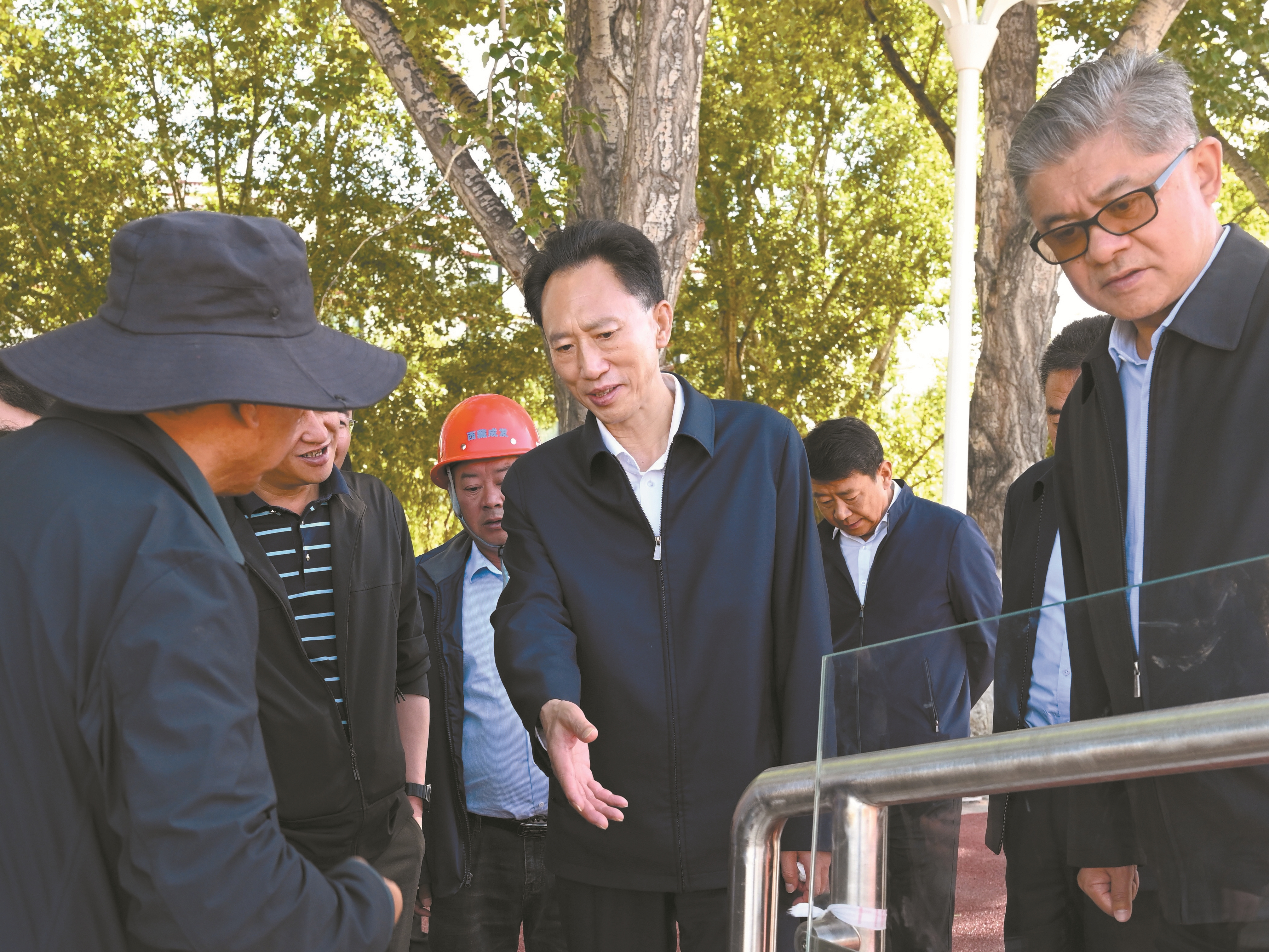 在当热路道路优化改造工程、拉鲁湿地巡护道路改造提升项目现场,肖友才认真听取工程进展、基础配套等情况汇报。(下转第二版)