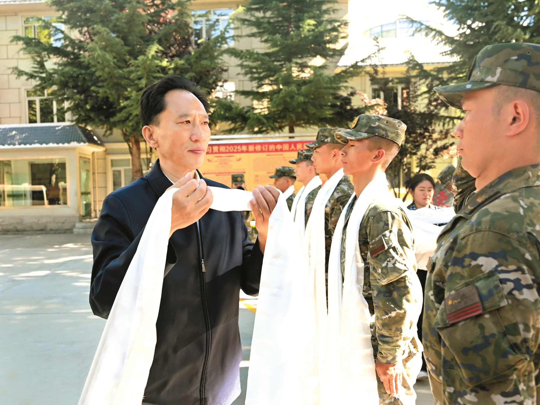 拉萨融媒讯(记者乔梁)8月5日上午,自治区党委常委、拉萨市委书记、拉萨警备区党委第一书记肖友才率市“四大班子”领导参加“军事日”活动并看望慰问部队官兵,代表市委、市人大常委会、市政府、市政协和全市各族干部群众,向驻拉广大解放军指战员、武警部队官兵、军队文职人员、民兵预备役人员和退役军人送去诚挚问候,共叙鱼水深情,共话军地发展。