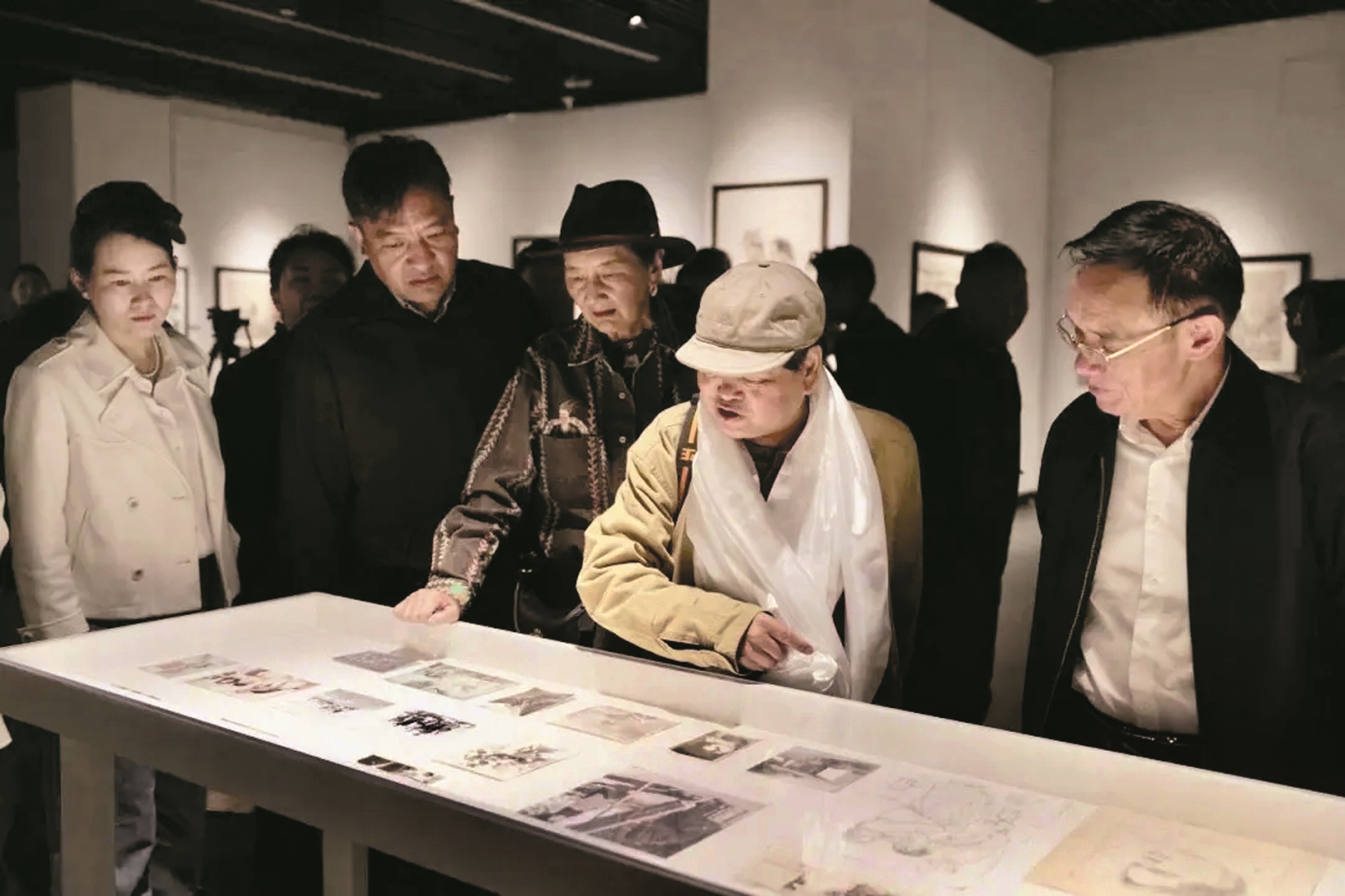 此次展览展出115件作品,从1976年的钢笔速写《拉萨初雪》,到2024年的岩彩巨制《雪域腾飞》,时间在画布上留下了清晰轨迹。