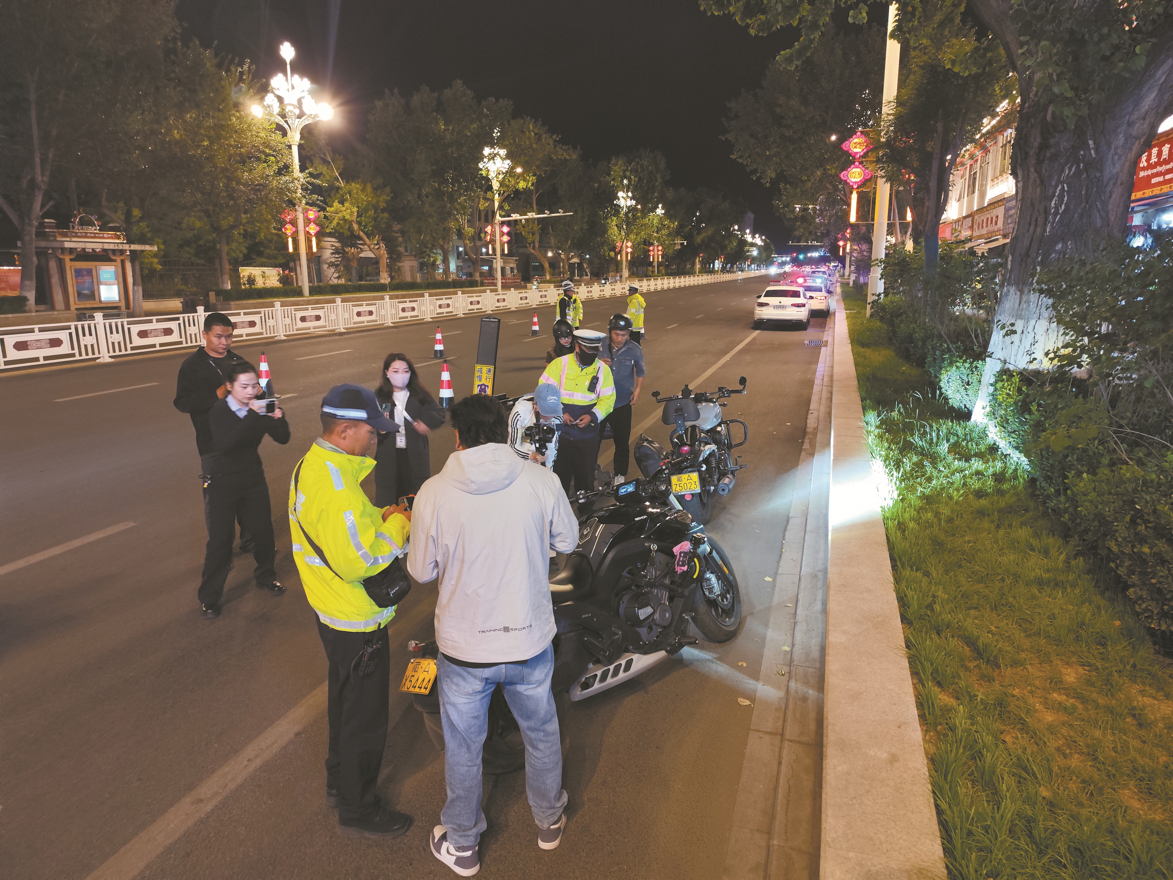 图为民警在林廓北路对过往摩托车进行检查。 拉萨融媒记者 齐永昌摄