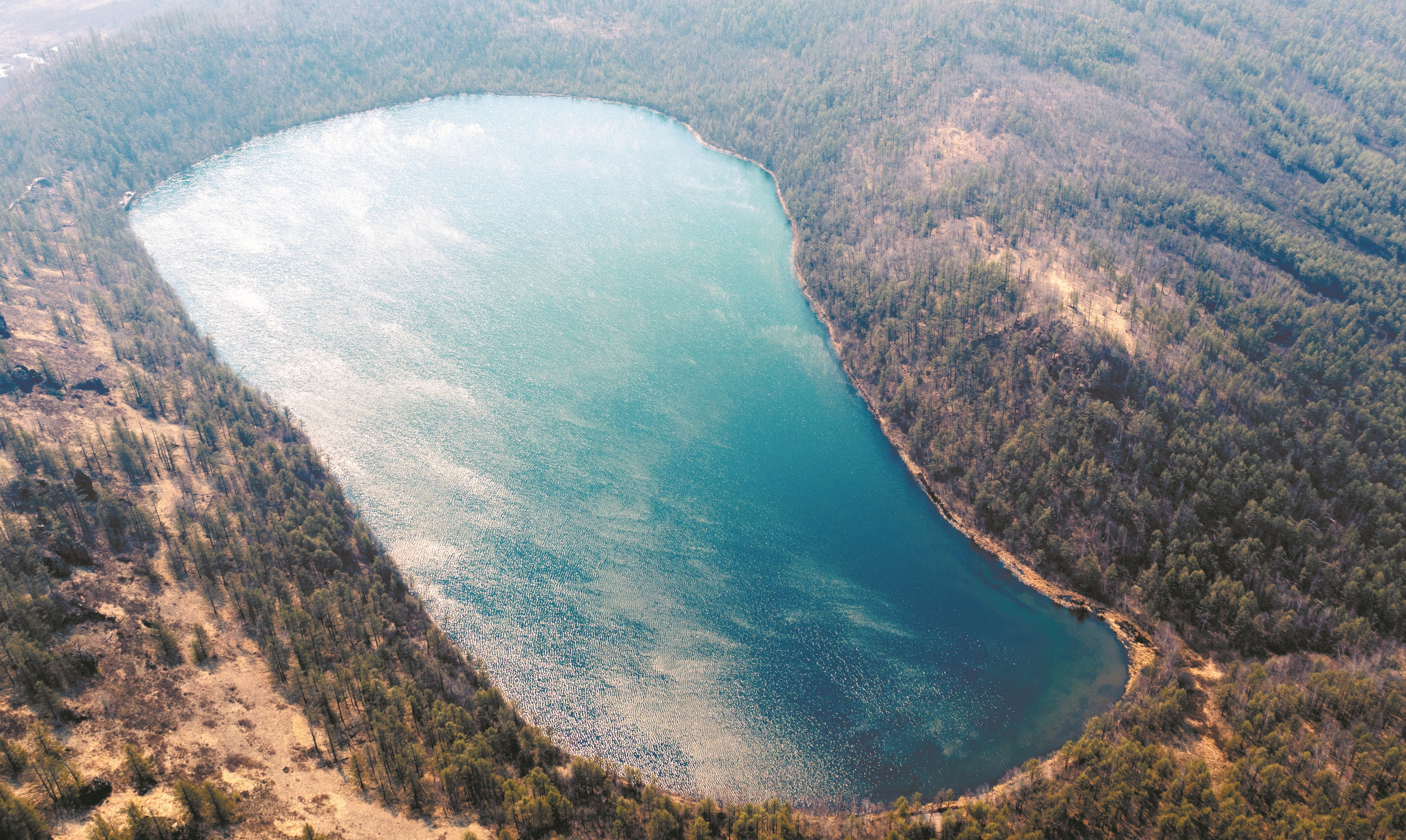 ▼这是5月20日在内蒙古阿尔山国家森林公园拍摄的驼峰岭天池(无人机照片)。新华社记者 马金瑞摄