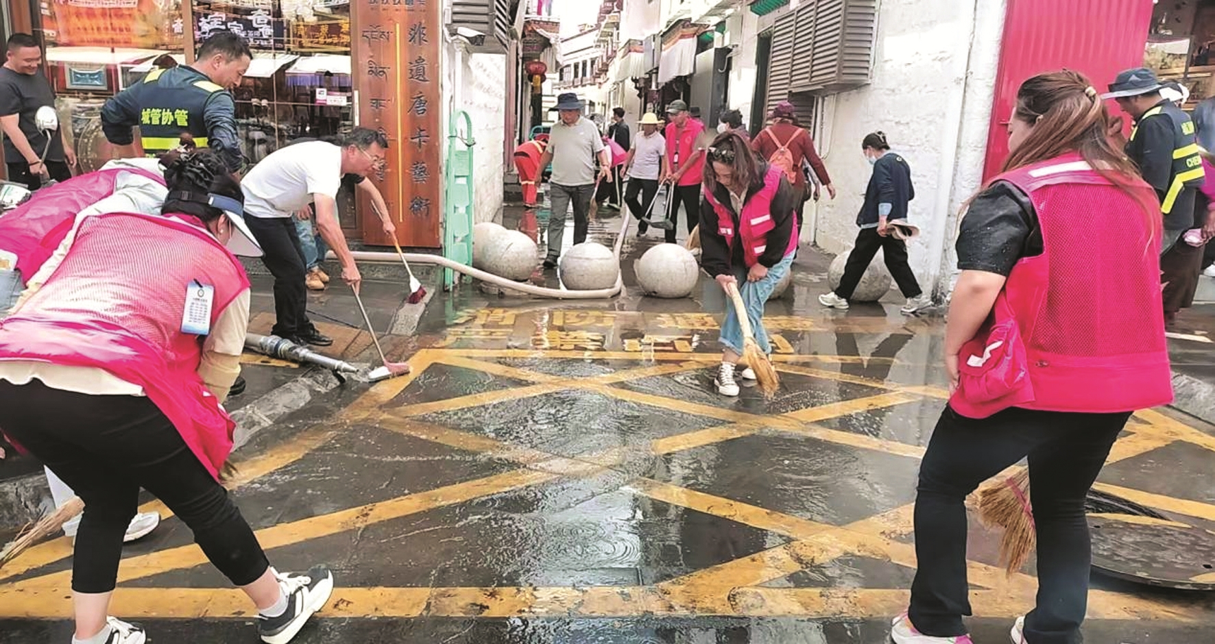 社区还根据古城风貌统一样式,开展旧“香布”更换工作。更换过程中,大家细心拆除旧布、清理窗户框架,再精准安装新“香布”,确保平整美观。居民群众积极配合,沿街商户索朗说:“新‘香布’让店面更显雅致,与古城氛围相得益彰。不仅让商户门店焕然一新,更为古城增添了喜庆氛围,看着心情很愉悦。”